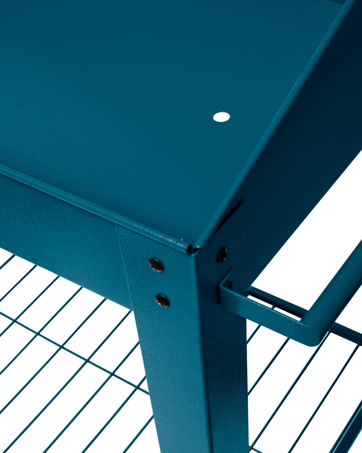 - HIGH QUALITY BUILT: Gardener's Supply EXCLUSIVE - Our innovative movable garden potting bench is built to last. Made from durable powder-coated galvanized steel that can hold up to 65 pounds of potting mix. The wire shelf below comes in handy to hold your gardening tools like mini shovel, gloves, extra pots, potting mix, and many more. The lightly textured, powder-coated steel surface is easy to clean, & there's a drainage hole so you can direct unused potting mix or water into a bucket