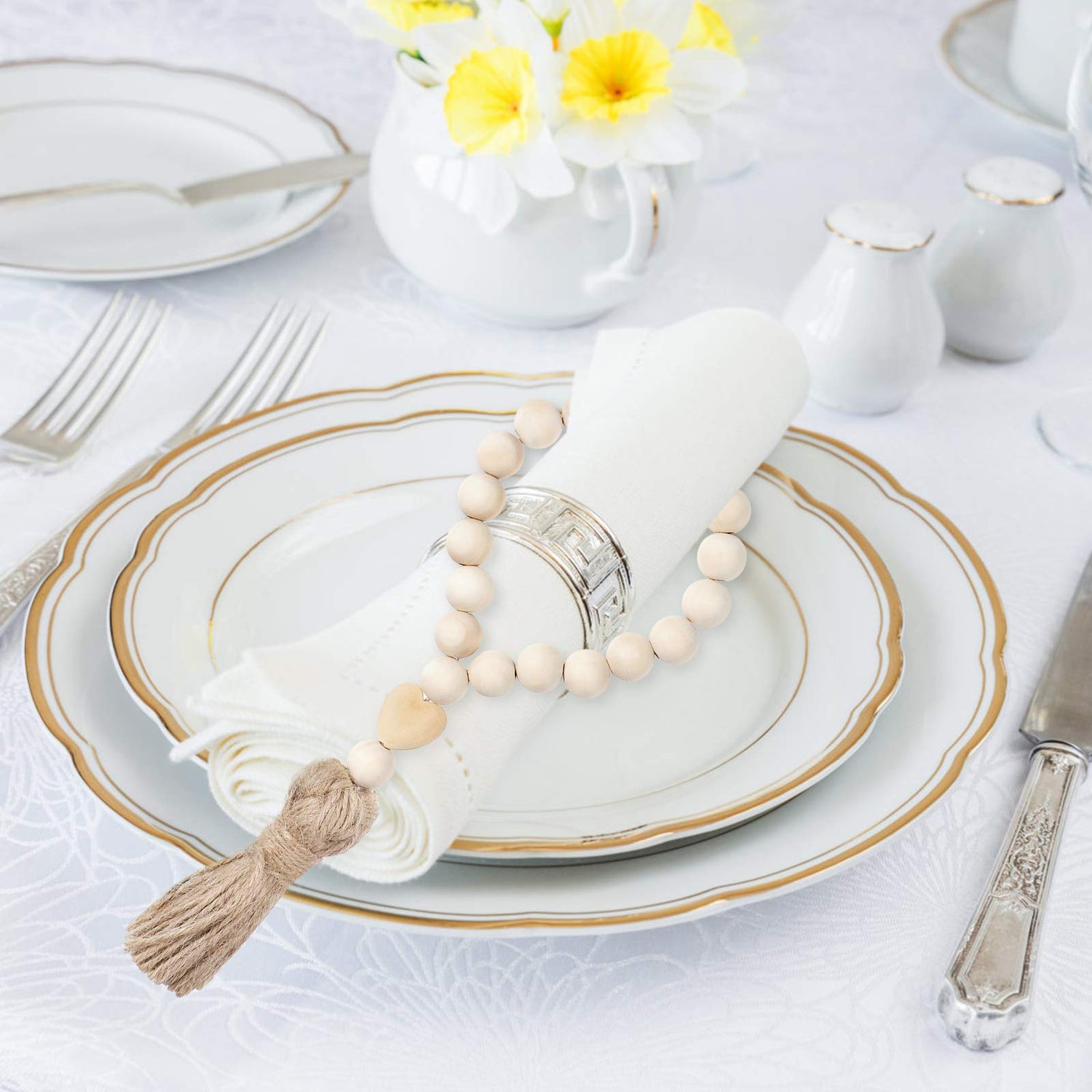 Garneck Wood Bead Garland,Farmhouse Tassels Beads, Rustic Country Decor Prayer Beads for Home Door Knob Christmas Decoration