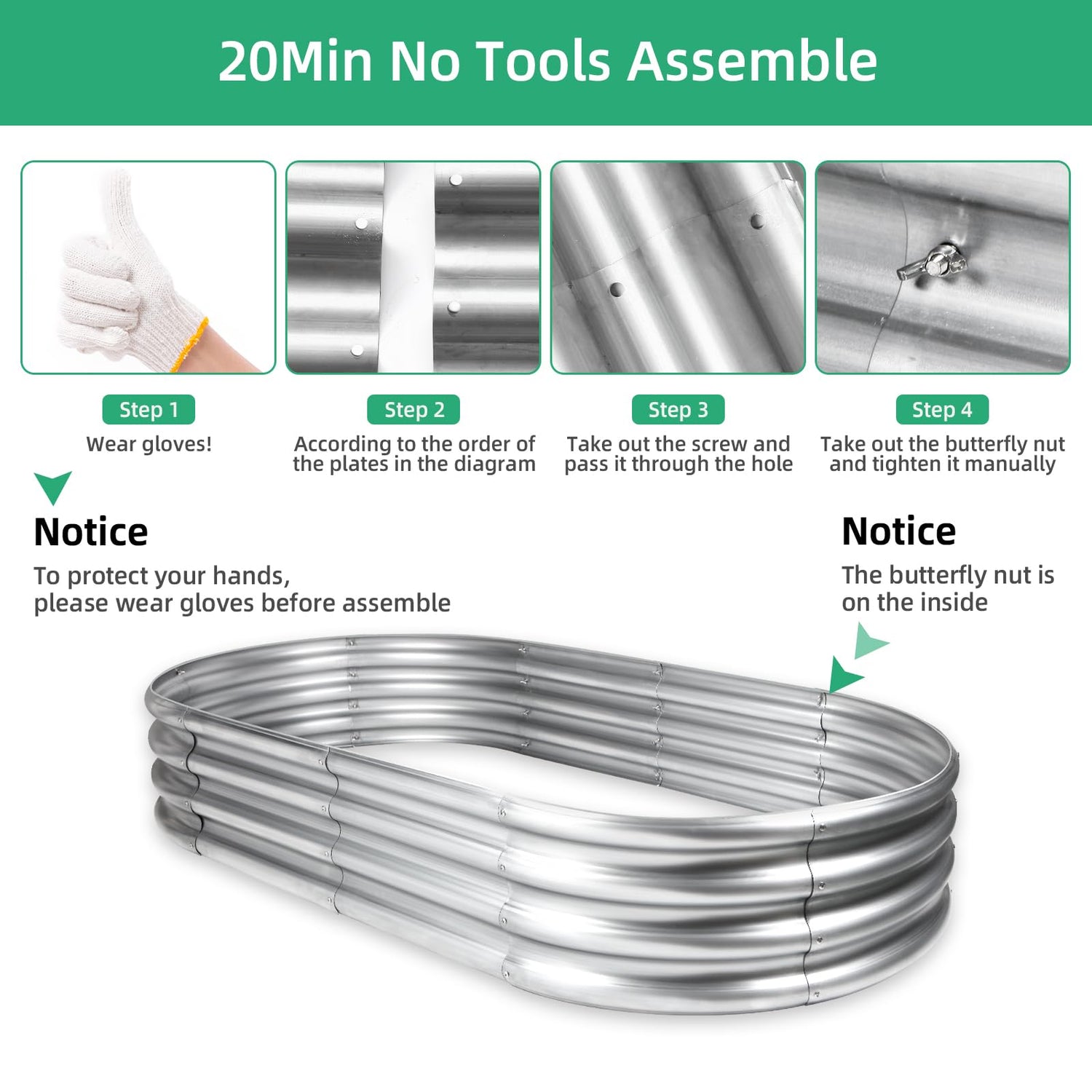 - 【Assembly without Tools】:Our galvanized planter for outdoor plants has been upgraded its accessories with new type of butterfly nuts. Assembly does not require tools, only manual rotation of the butterfly nut is required to tighten two galvanized sheets. More stable than regular nuts, easy to assemble. Notice: Galvanized sheet is heavy, we suggest wearing our gloves for operation.