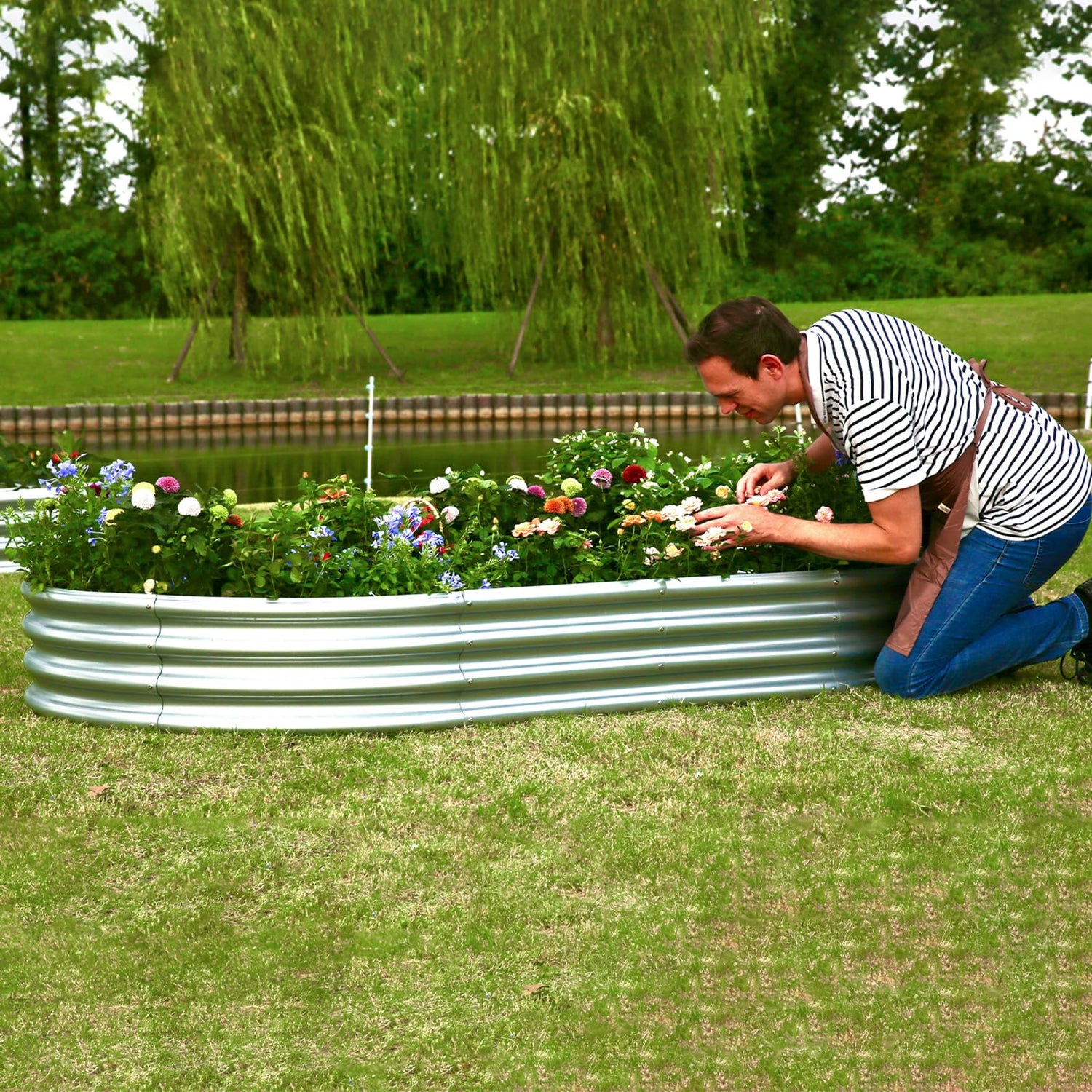 Gartist 6x3x1ft Thickening Galvanized Raised Garden Bed, Planter Box for Outdoor, Oval Larger Space Garden Bed Planter for Herbs, Vegetables, Fruits