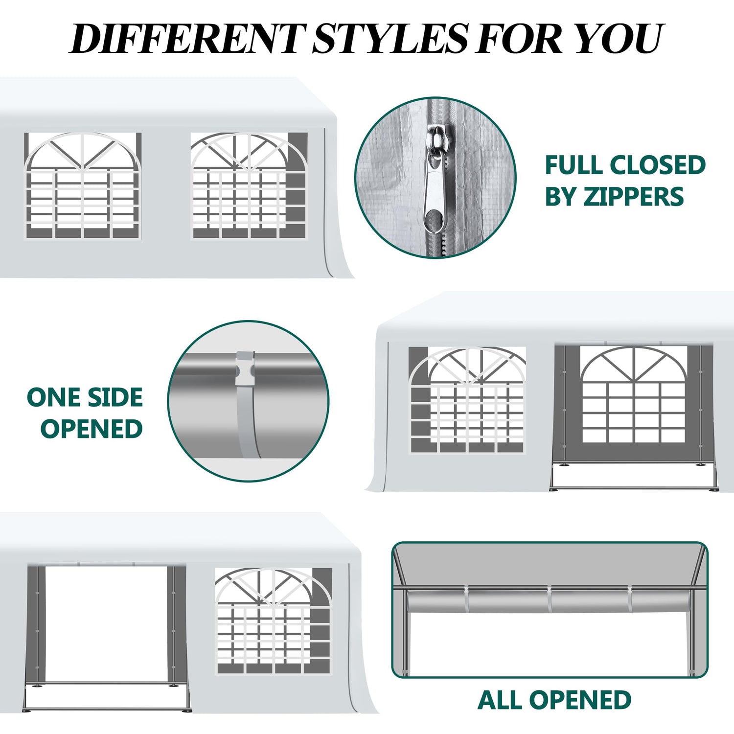 - 🏕️GOOD VENTILATION & UPGRADED GALVANISED FRAME: Added extra sidewall zippers to keep good ventilation. Let you have full airflow at outdoor time. The outdoor canopy event tent is made of galvanised heavy-duty frame and the galvanization craftsmanship will make it more rust resistant and more durable