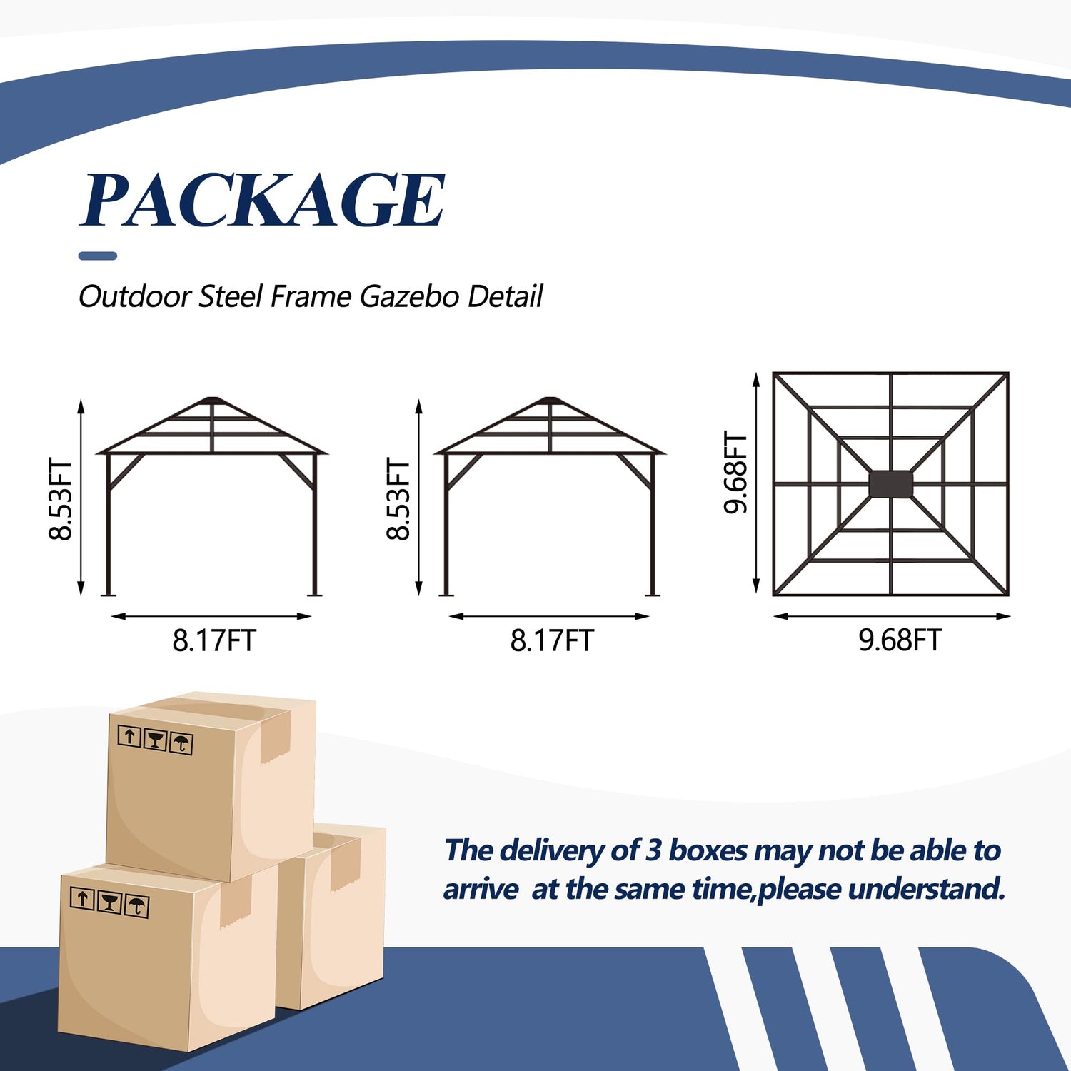 - ⛱️CUSTOMMER SERIVCE AND INSTALLTION:In order to install this outdoor waterproof gazebo, we feature detailed canopy gazebo installation instructions and all the necessary hardware. All you need to do is to be safe while assembling the parts of your gazebo