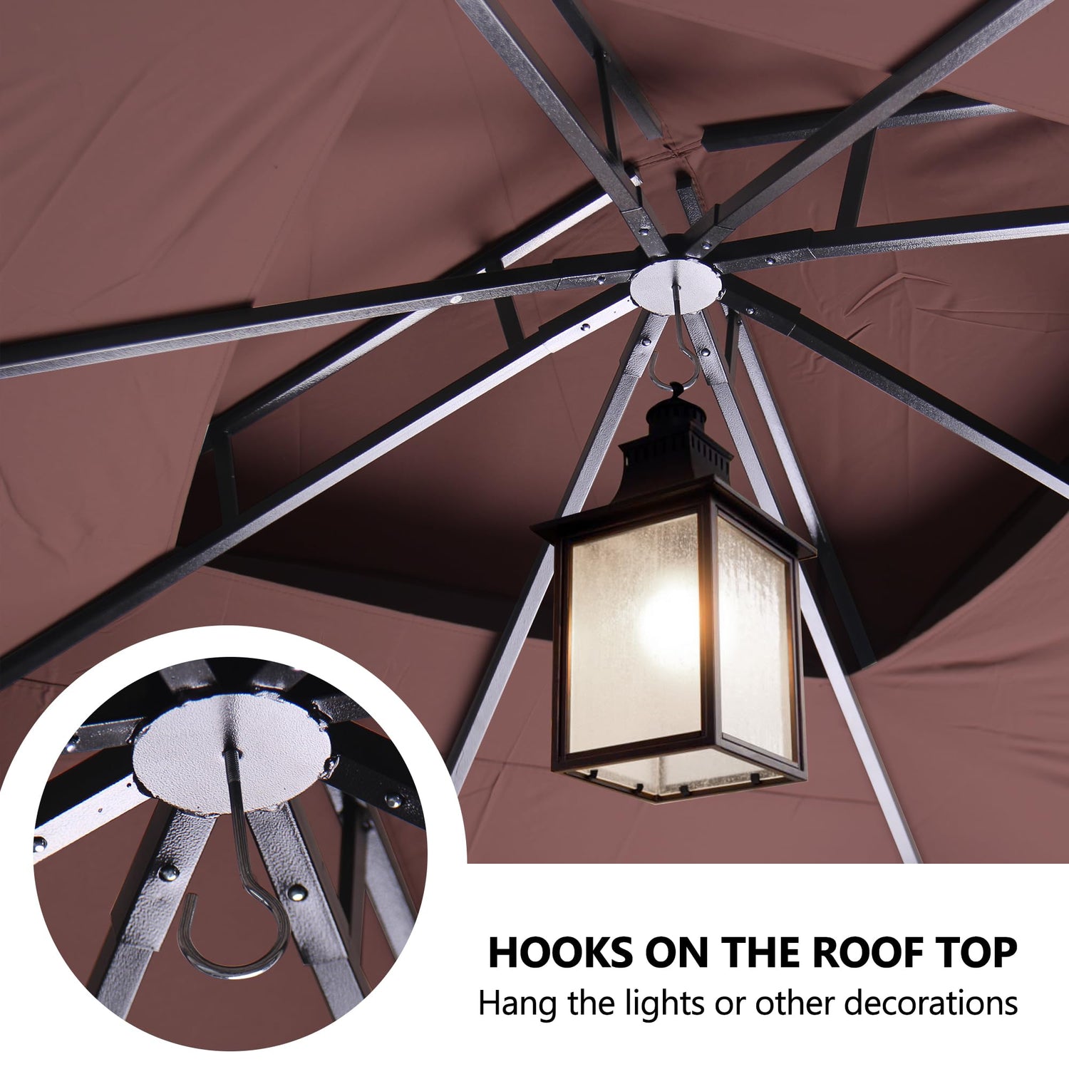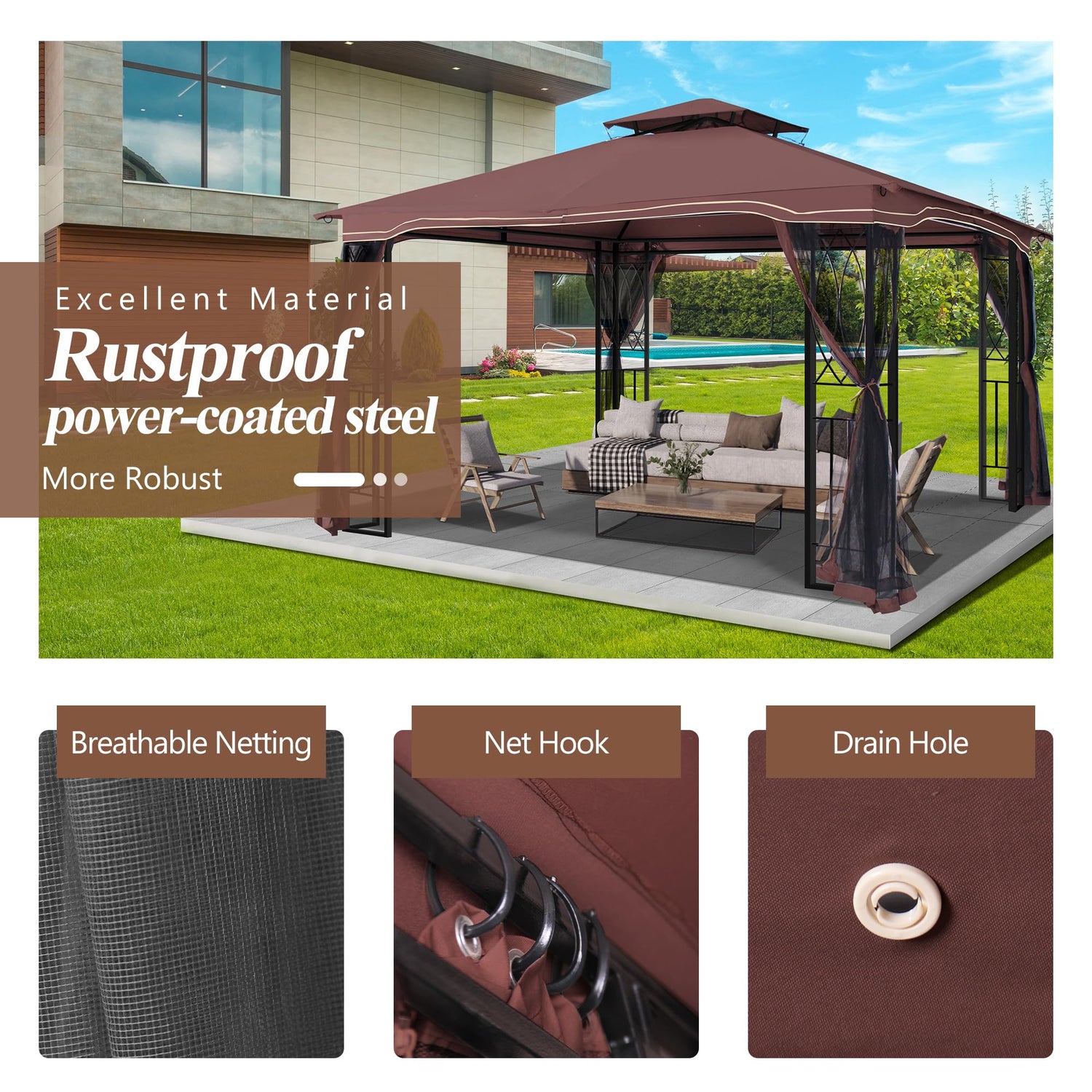 GARTOO 11'x13' Outdoor Patio Gazebo - Porch Gazebo with Polyester Roof & Breathable Netting, Best for Garden, Lawn, Backyard Deck (Chocolate)