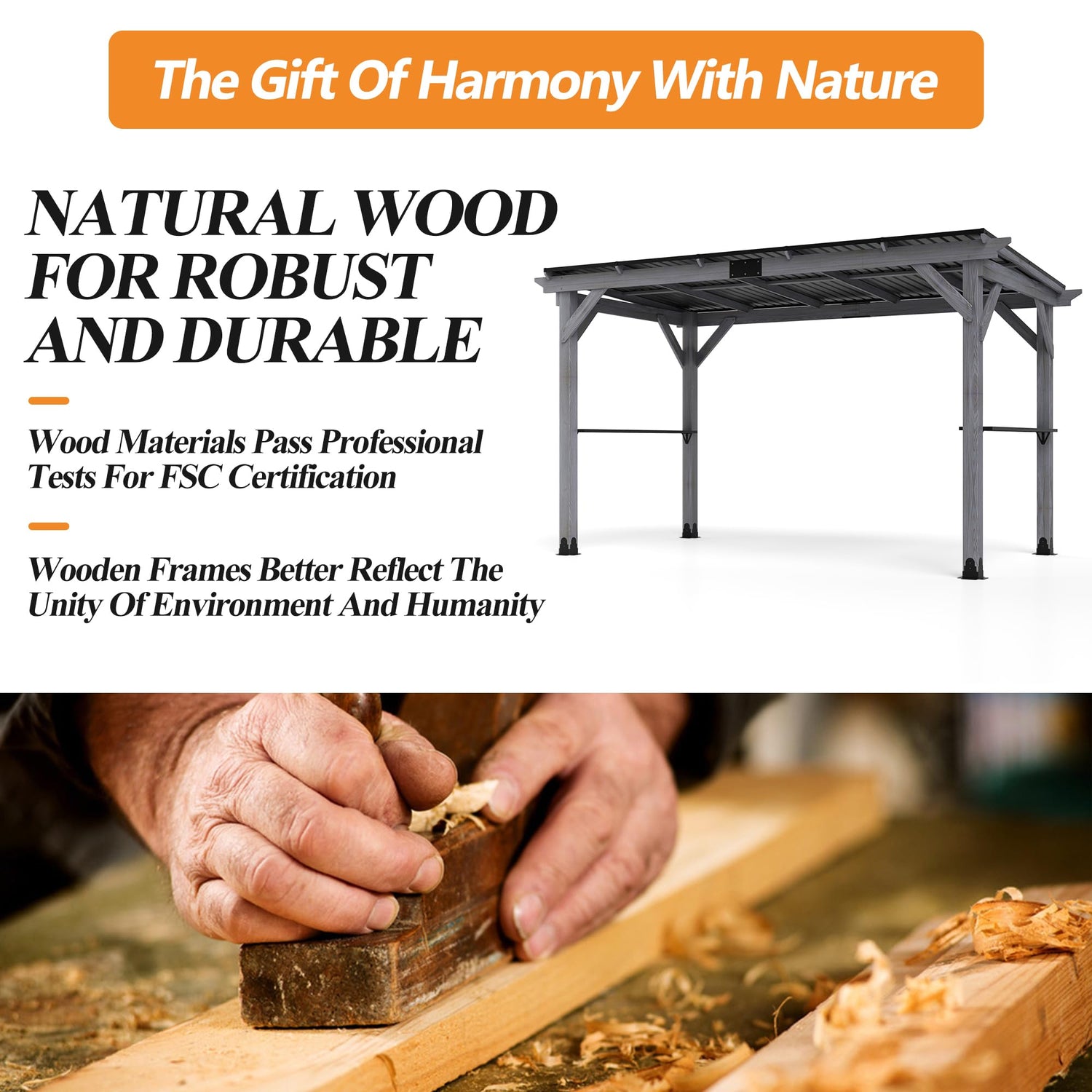 - 🖼️PREMIUM CEDAR WOOD FRAME: The frame of the wood grill gazebo is made of solid wood, which is strong and stable, and the natural wood grain blends in with the patio, providing you with a durable outdoor deck wood gazebo. In addition, we comply with FSC standards to maintain the ecological balance and biodiversity of our forests. We promote ecological sustainability when making this wooden BBQ gazebo.