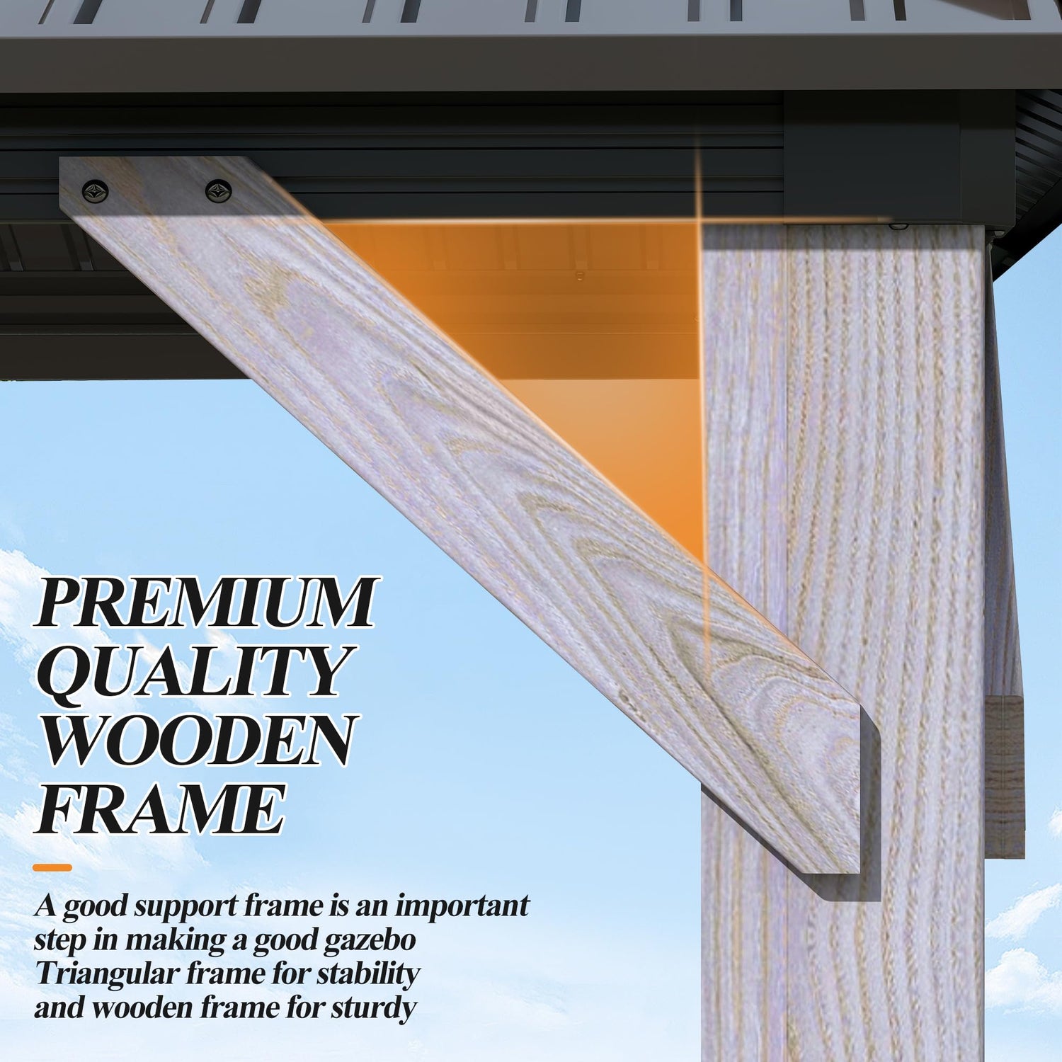 - ⛱️USEFUL ACCESSORIES: Our patio wooden frame with metal canopy gazebos are double-roofed and equipped with netting and curtains for complete privacy and protection, offering excellent protection against UV rays. Netting provides ventilation and curtains provide privacy, allowing you to enjoy the outdoors in complete peace and without any distractions in using the double waterproof hardtop top gazebo