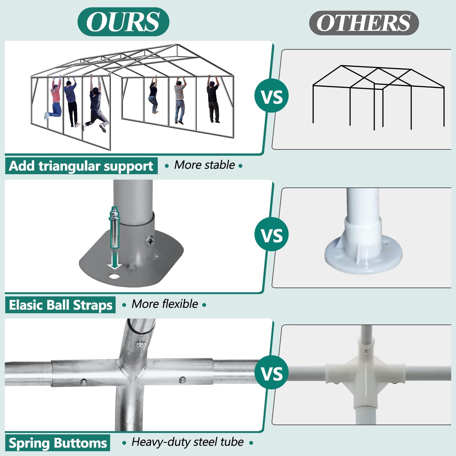 - 🏕️GOOD VENTILATION & UPGRADED GALVANISED FRAME: Added extra sidewall zippers to keep good ventilation. Let you have full airflow at outdoor time. The outdoor canopy event tent is made of galvanised heavy-duty frame and the galvanization craftsmanship will make it more rust resistant and more durable