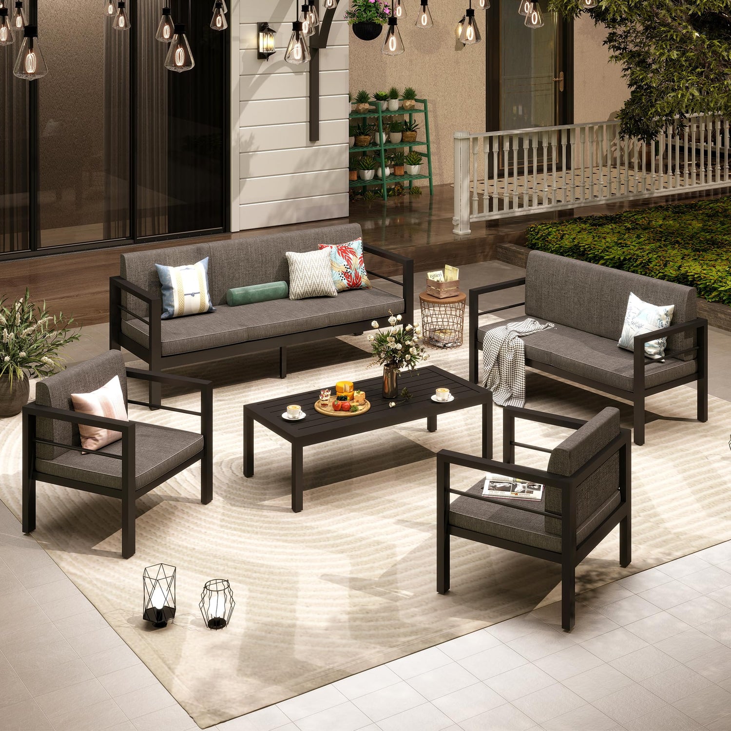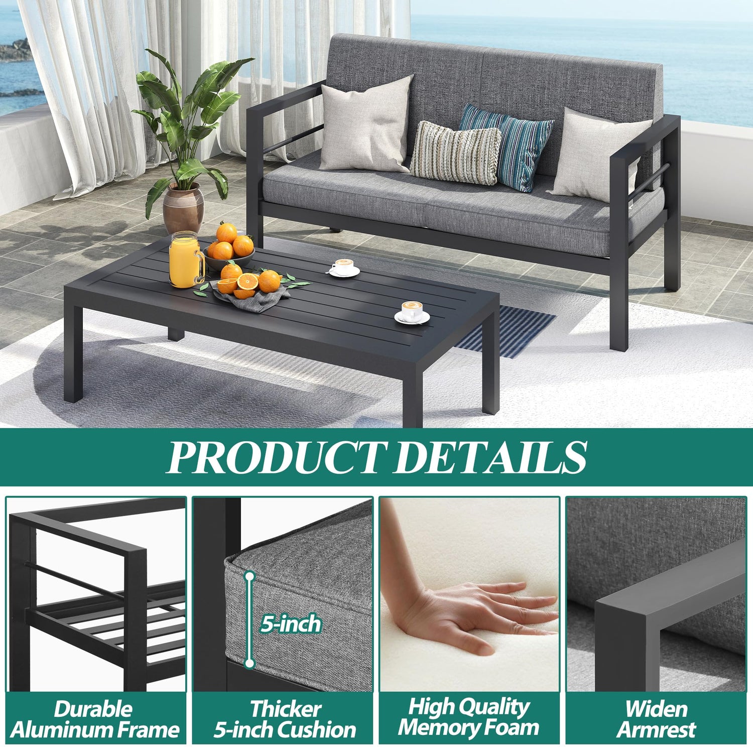 GARTOO Outdoor Aluminum Furniture Set - 5 Pieces Patio Conversation Sofa Sets with Upgraded Removable Cushion, Outside Sectional Sofas Sets with Coffee Table for Balcony, Backyard, Patio, Poolside
