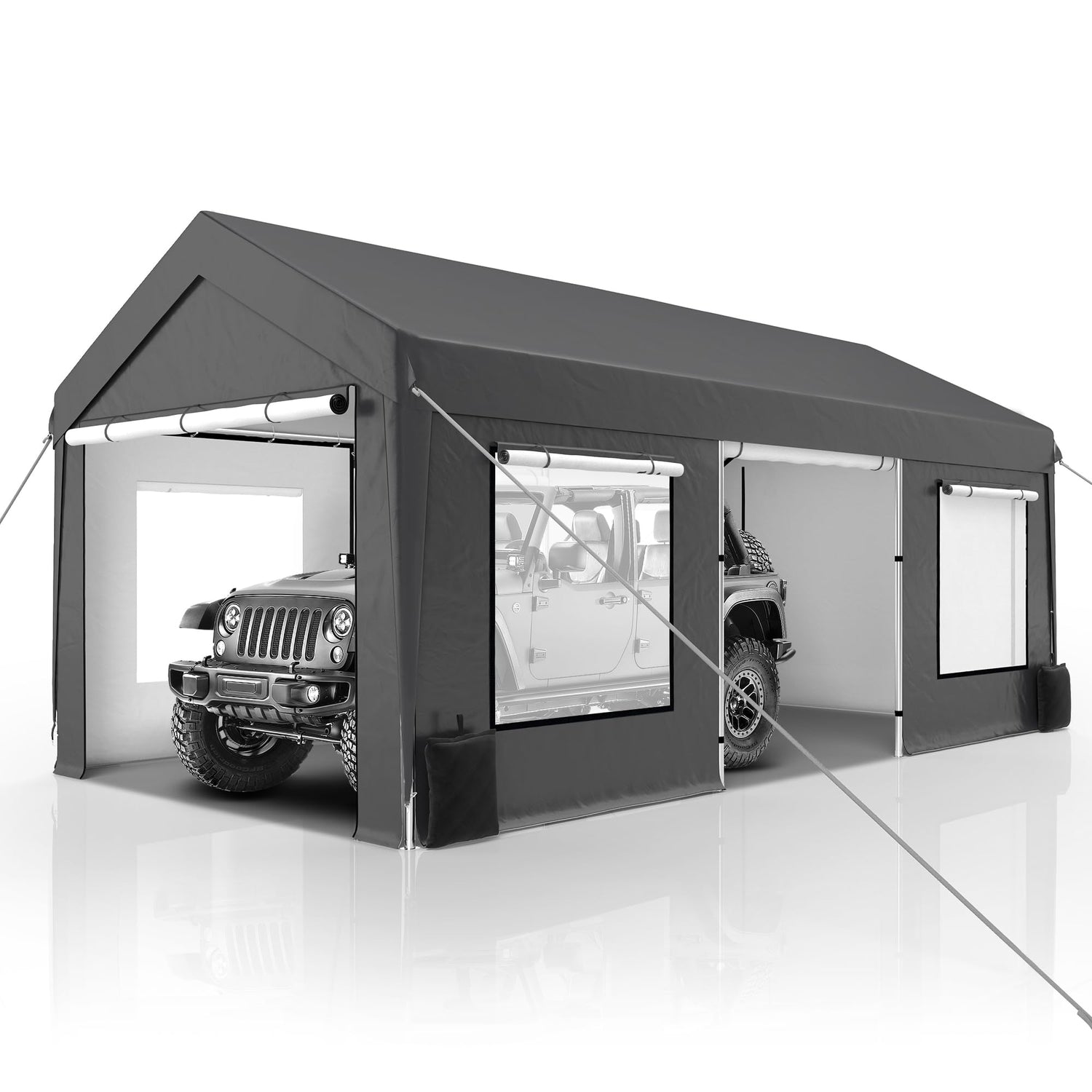 GARTOO Upgrade 10' x 20' Heavy Duty Carport, Extra Large Shelter with Roll-up Ventilated Windows & Side Doors, Portable Garage for Car Boat Truck Auto Shelter Motorcycle Outdoor Events Parties, Gray