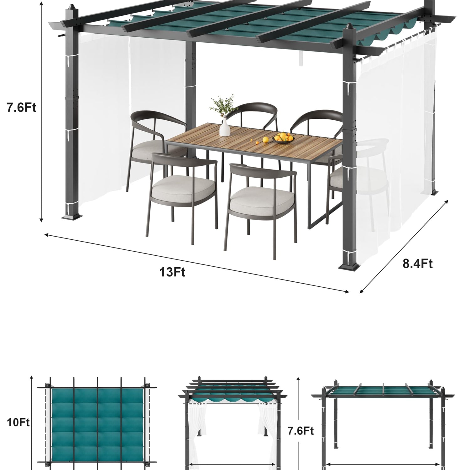 Garvee 10x13 Ft Outdoor Retractable Pergola with Canopy and Side Mesh Screen, Upgraded Gray Post Aluminum Pergola, Modern Pavilion for Backyard, Patio, Porch, Grape Trellis, Blue + White