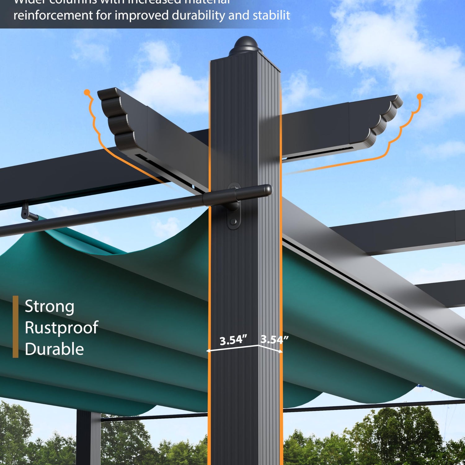 - Sturdy Structure: The patio pergola features a high-quality aluminum alloy frame with a powder-coated finish, offering excellent rust-proof and corrosion-resistant properties. This ensures the gazebo maintains structural integrity and aesthetic appeal under various weather conditions