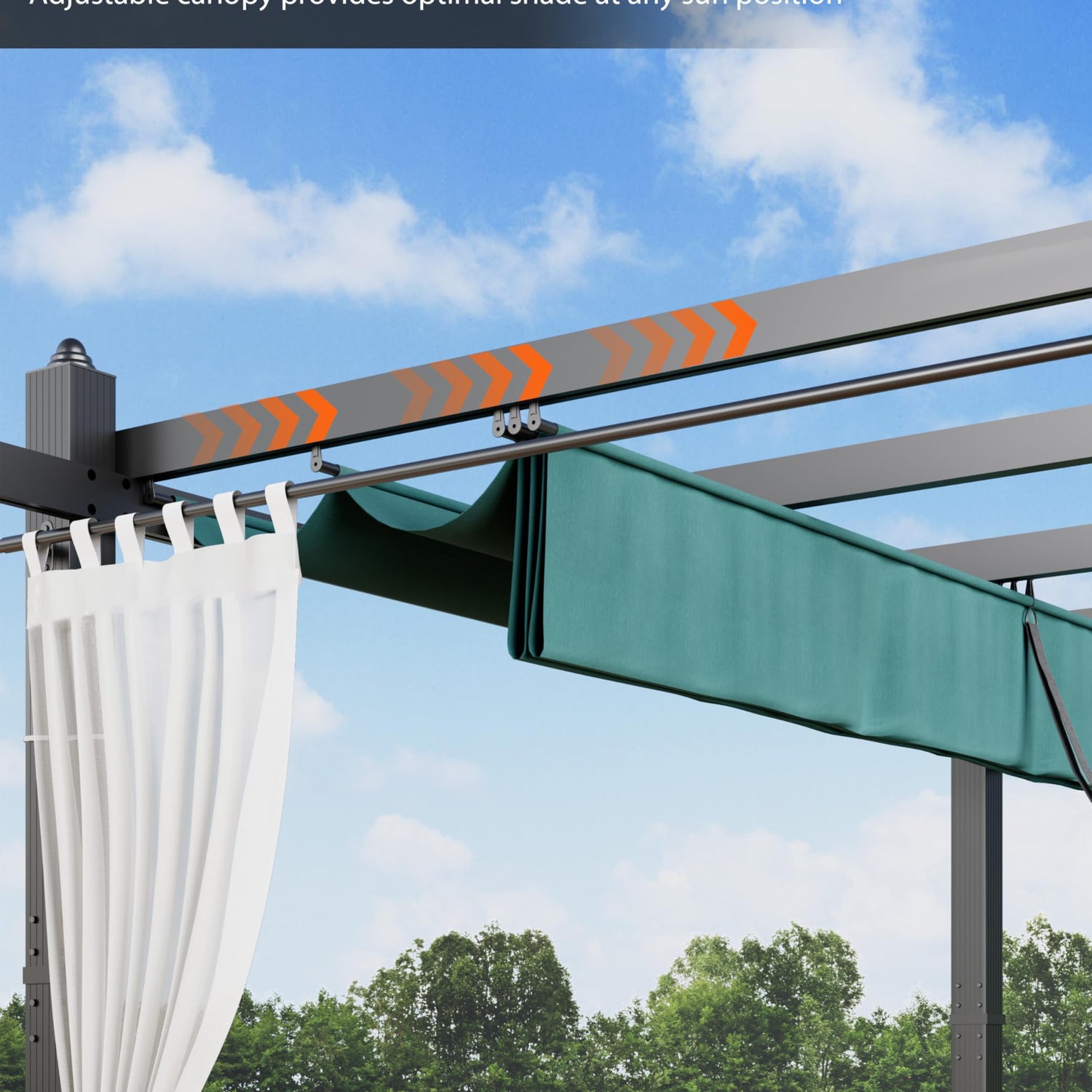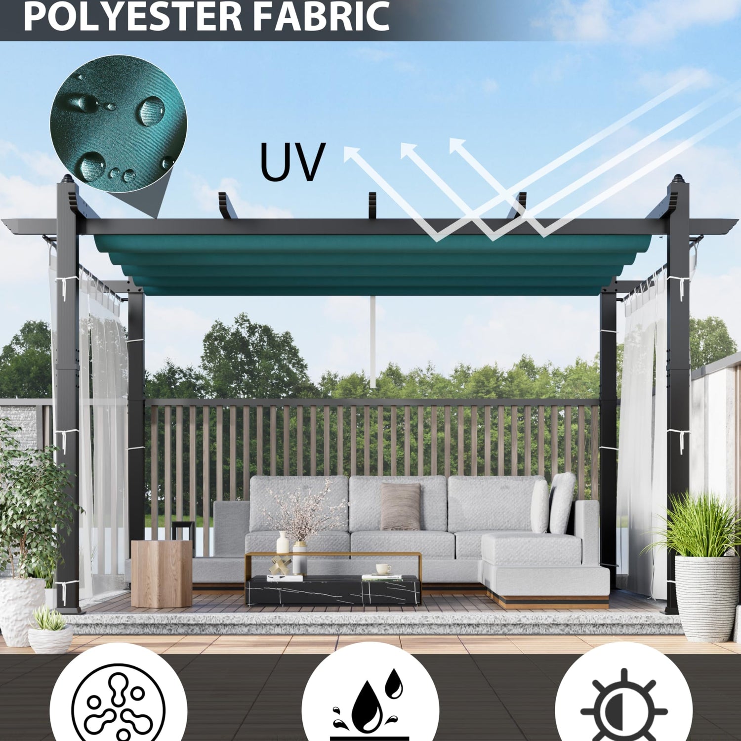 - Retractable Outdoor Canopy: Equipped with a built-in sliding rail system, this product includes a retractable canopy and side mesh screens, allowing you to easily customize shaded areas as needed. The canopy is made of PA-coated fabric, providing waterproof and UV-resistant. Note: Use of the canopy is not recommended during extreme weather conditions such as strong winds, heavy rain, or snow