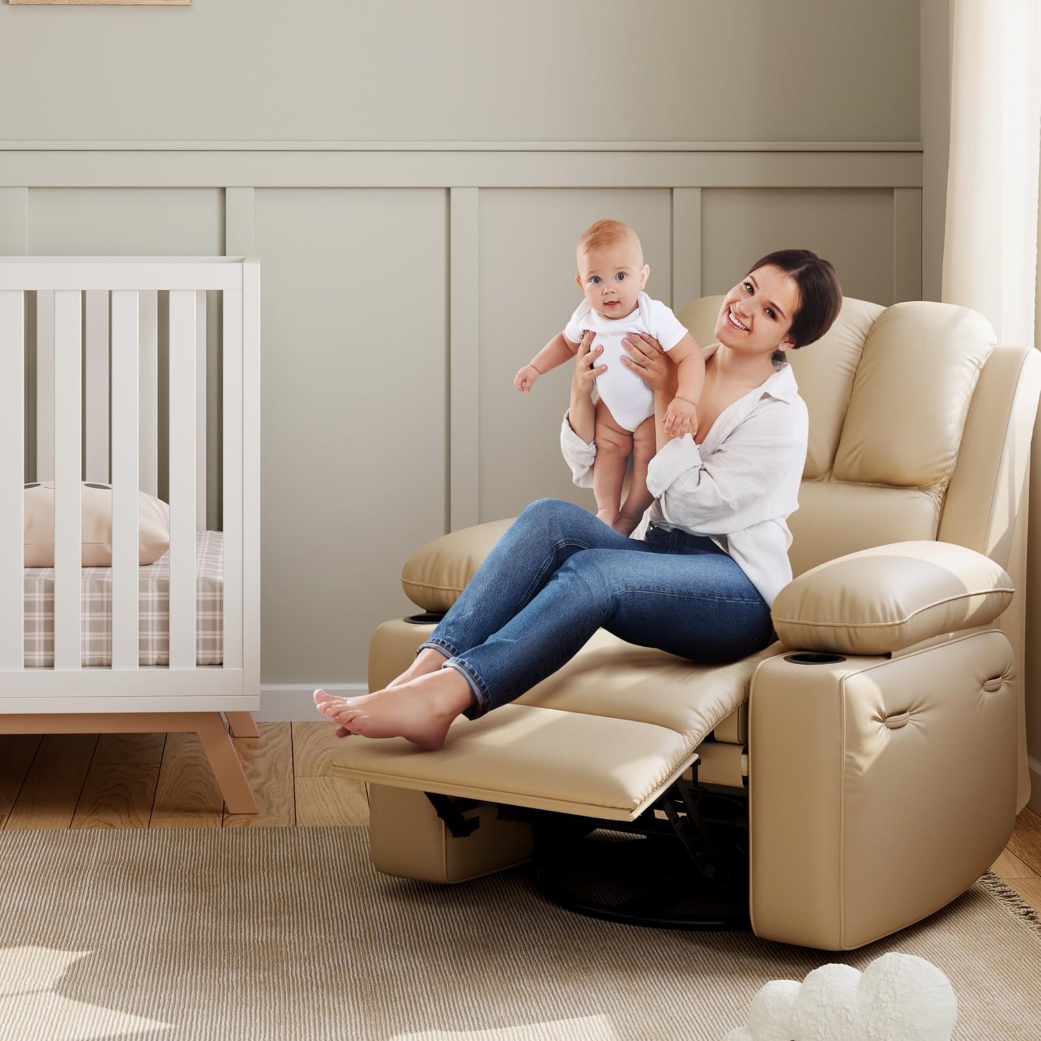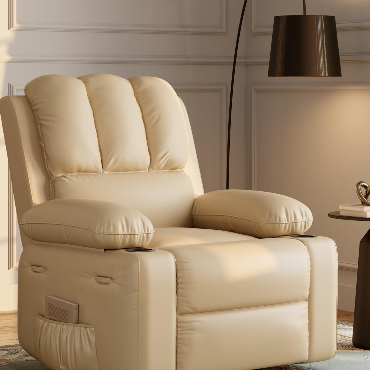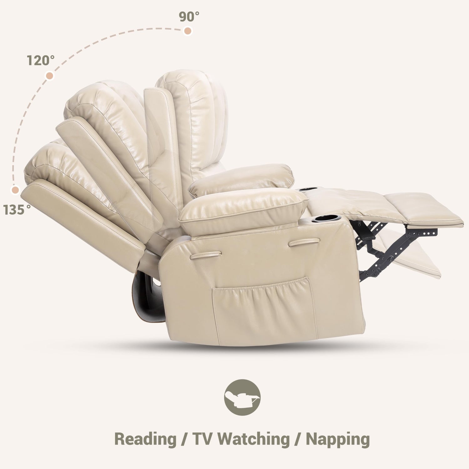 Garvee 27'' Oversized Recliner, Manual Recliner Chair for Adults, PU Leather Single Sofa with Extra Width, for Nursery, Living Room, and Bedroom, Creamy