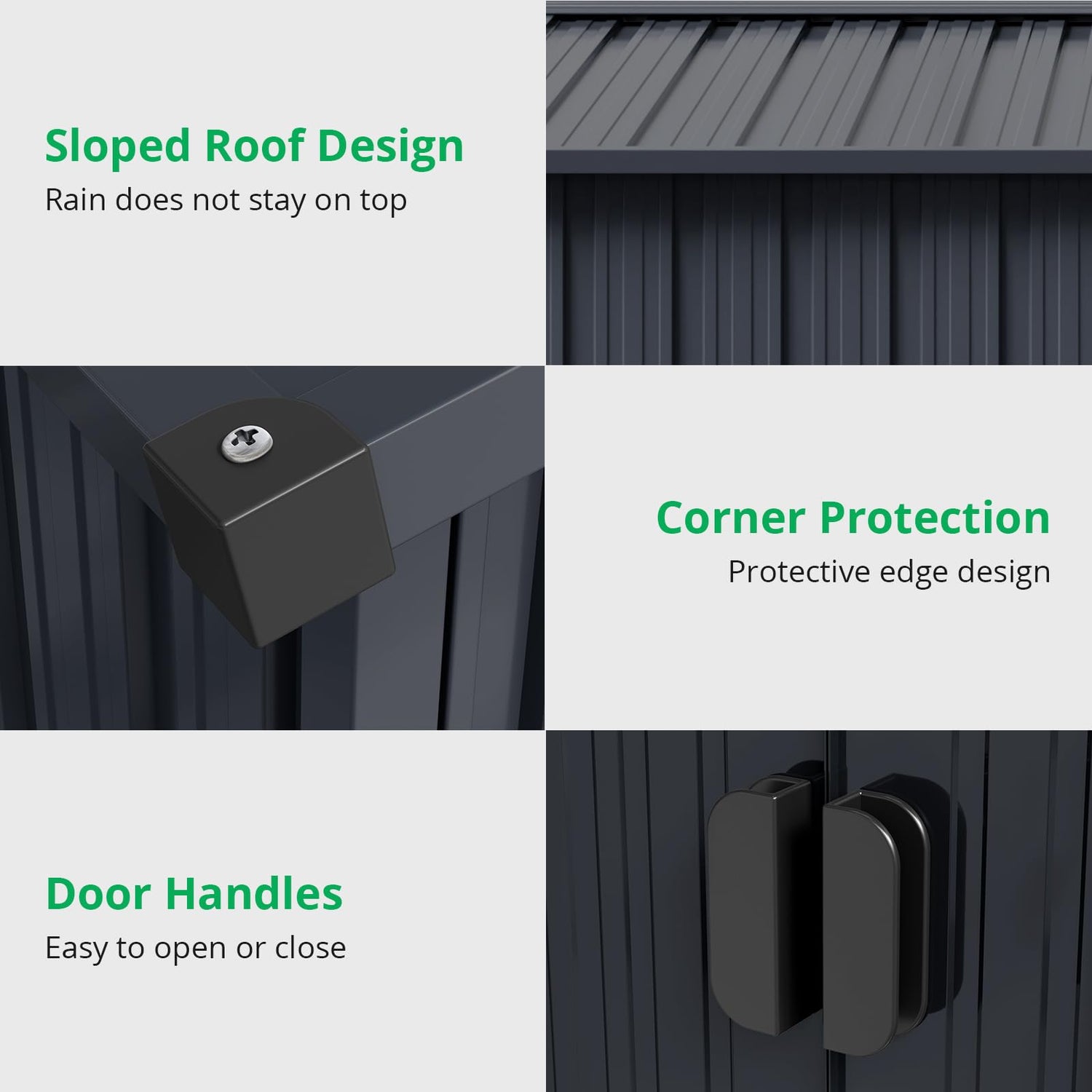 - Durable Structure: Made of galvanized steel, this weather-resistant metal storage shed features advanced corrosion resistance and durability, capable of withstanding various weather conditions and UV exposure, providing a reliable outdoor storage solution