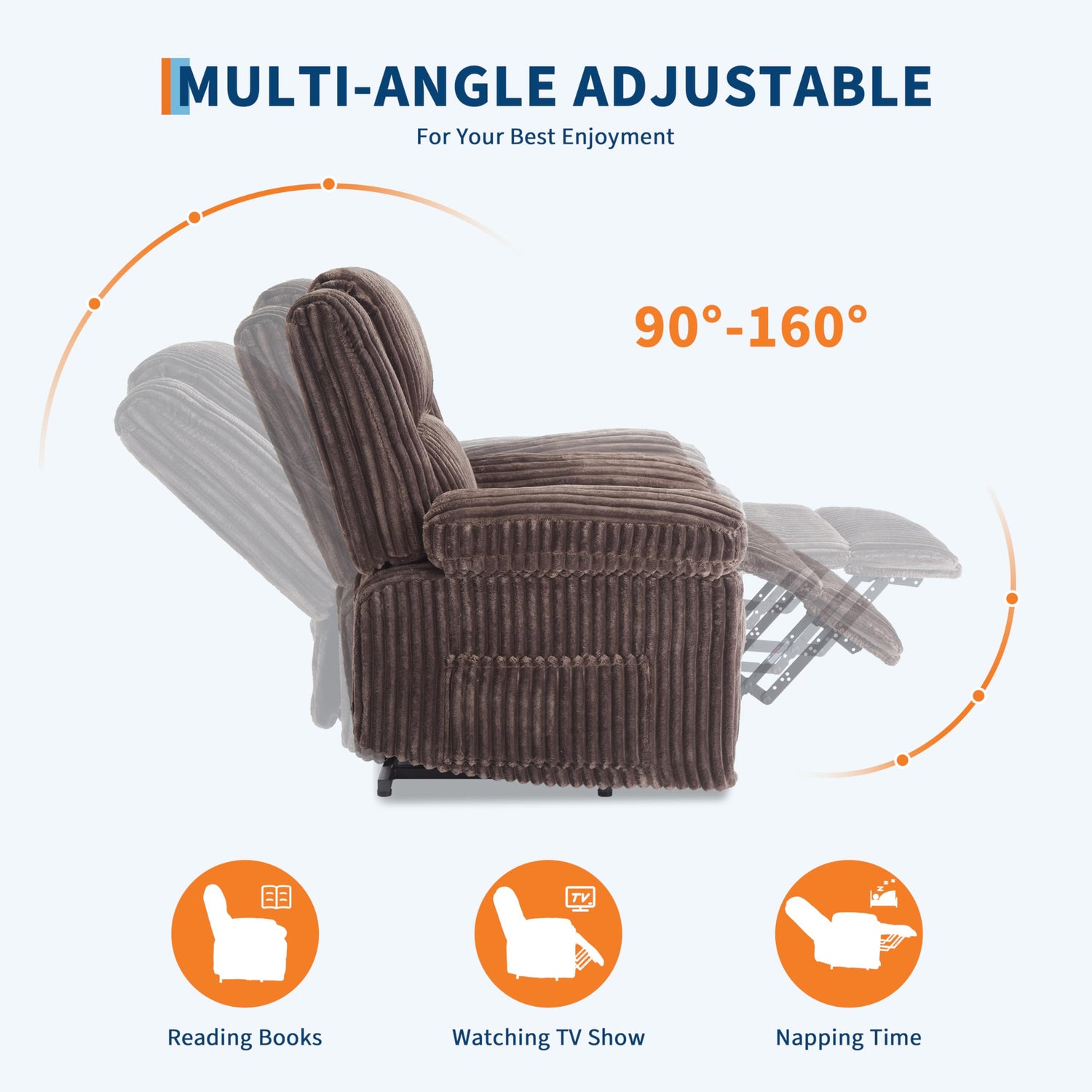 - 【Soft Corduroy Fabric Recliner Chair】: Upholstered in soft, textured corduroy fabric, this recliner chair offers a warm and inviting seat, making it great for relaxing.