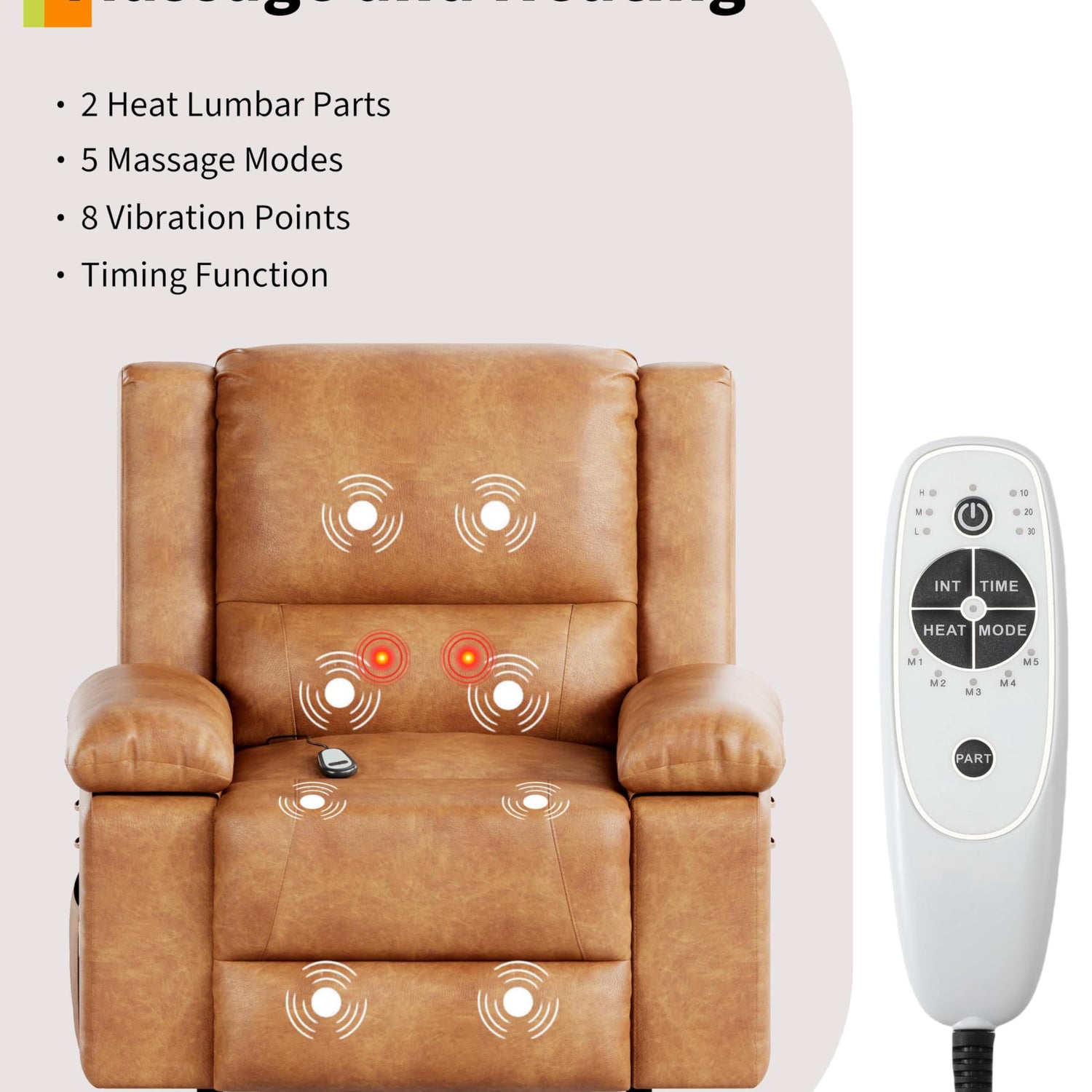 Garvee Electric Lift Recliner Chair - Heat and Massage, PU Leather Power Lift Recliner for Elderly & Mobility Impaired, Adjustable Back and Legs, Heavy Duty Lift Chair for Seniors