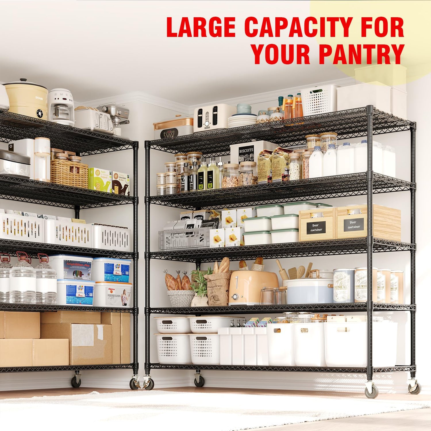 Garvee Heavy Duty 82" H Storage Shelving Units, 3300LBS 5-Tier Metal Shelves with Wheels & Feet, Large Adjustable Wire Shelving Organizer Rack for Garage, Pantry Rooms & Commercial, 59" W x 23.6" D