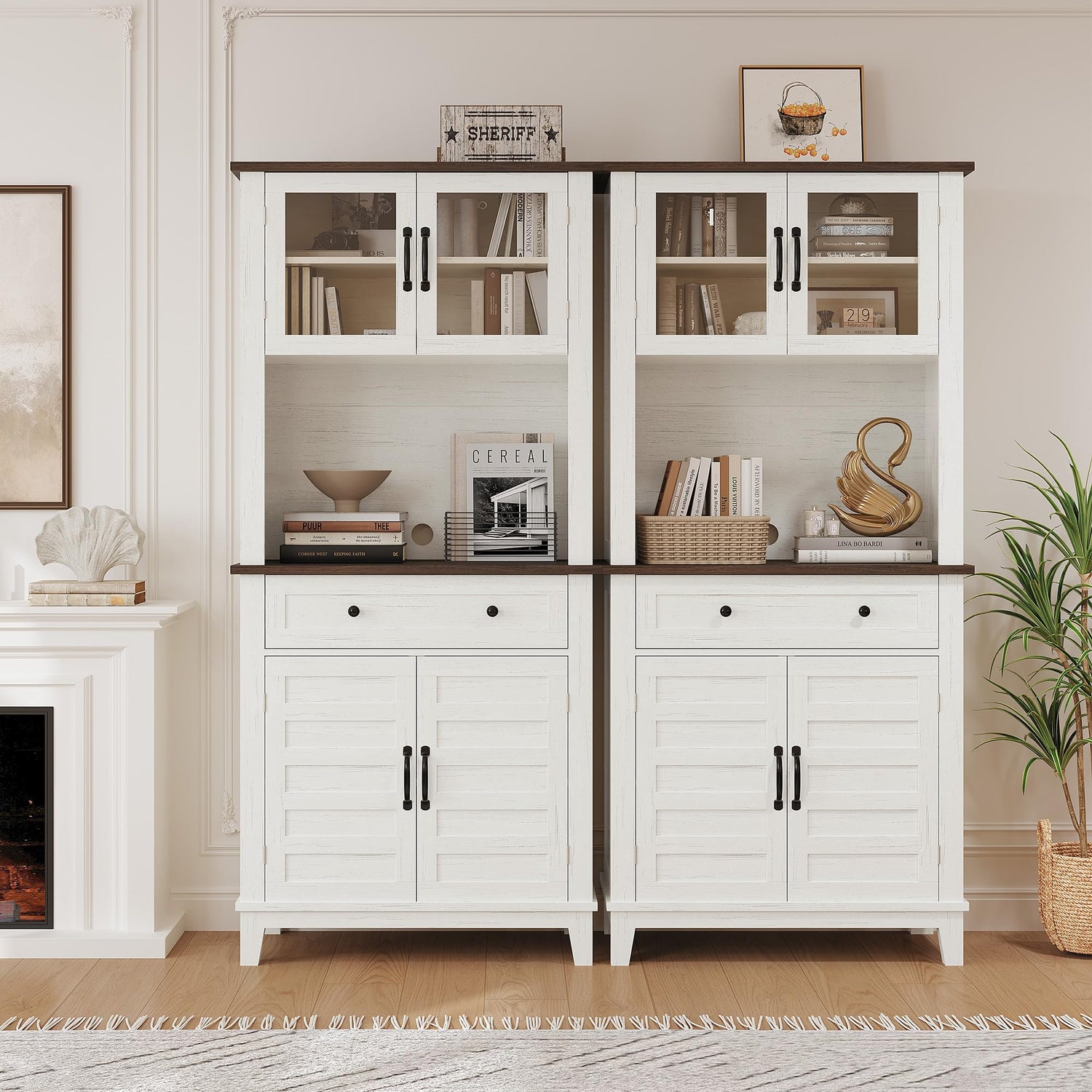 Garvee Kitchen Pantry, 72" Farmhouse Coffee Bar Table with Storage Drawers & Glass Doors, Stand Cabinet for Kitchen, Dining Room