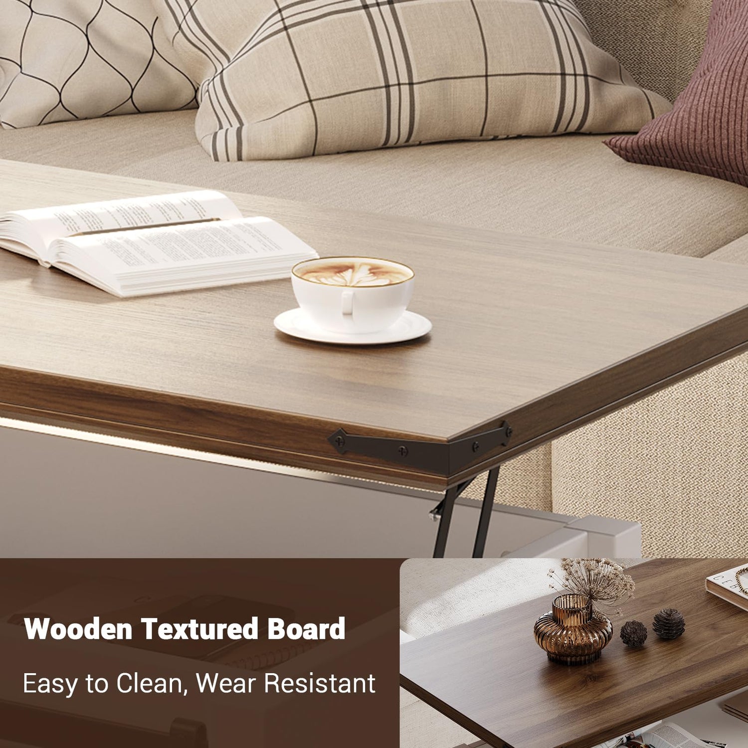 - ERGONOMIC LIFT-TOP DESIGN: Say goodbye to uncomfortable postures! Our lift-top coffee table allows you to elevate the tabletop to a more comfortable height for typing, dining, or relaxing, ensuring a user-friendly experience.
