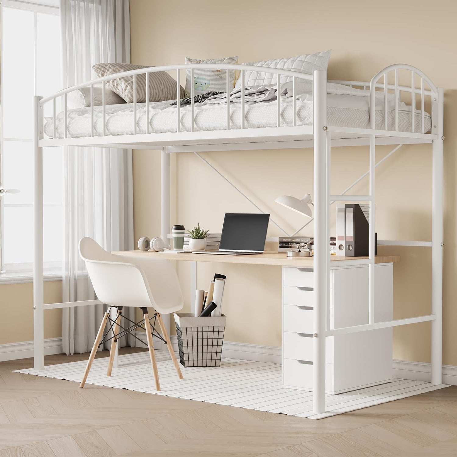 - 【Enhanced Safety & Stability】This twin size loft bed features a 15-inch arched guardrail to prevent falls, plus heavy-duty anti-tip brackets that anchor securely to walls. For maximum safety, ensure mattresses sit 5+ inches below the guardrail. Ideal for kids and adults, its reinforced structure provides peace of mind during use.