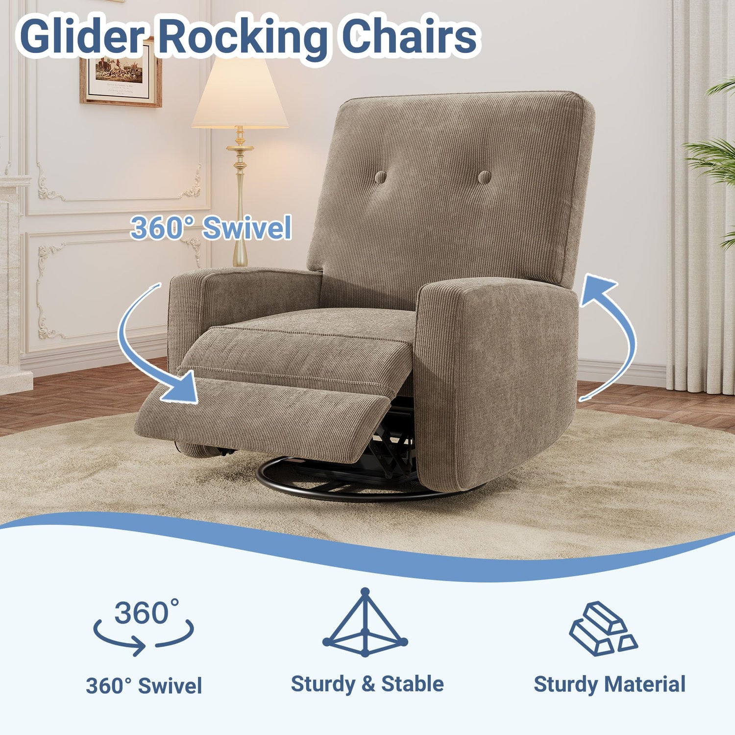 Garvee Nursery Recliner Chair, 360° Swivel Rocking Glider Chair for Adults with Adjustable Backrest & Footrest, Cozy Corduroy Upholstered Armchair for Living Rooms, Bedrooms, Apartments, Light Brown