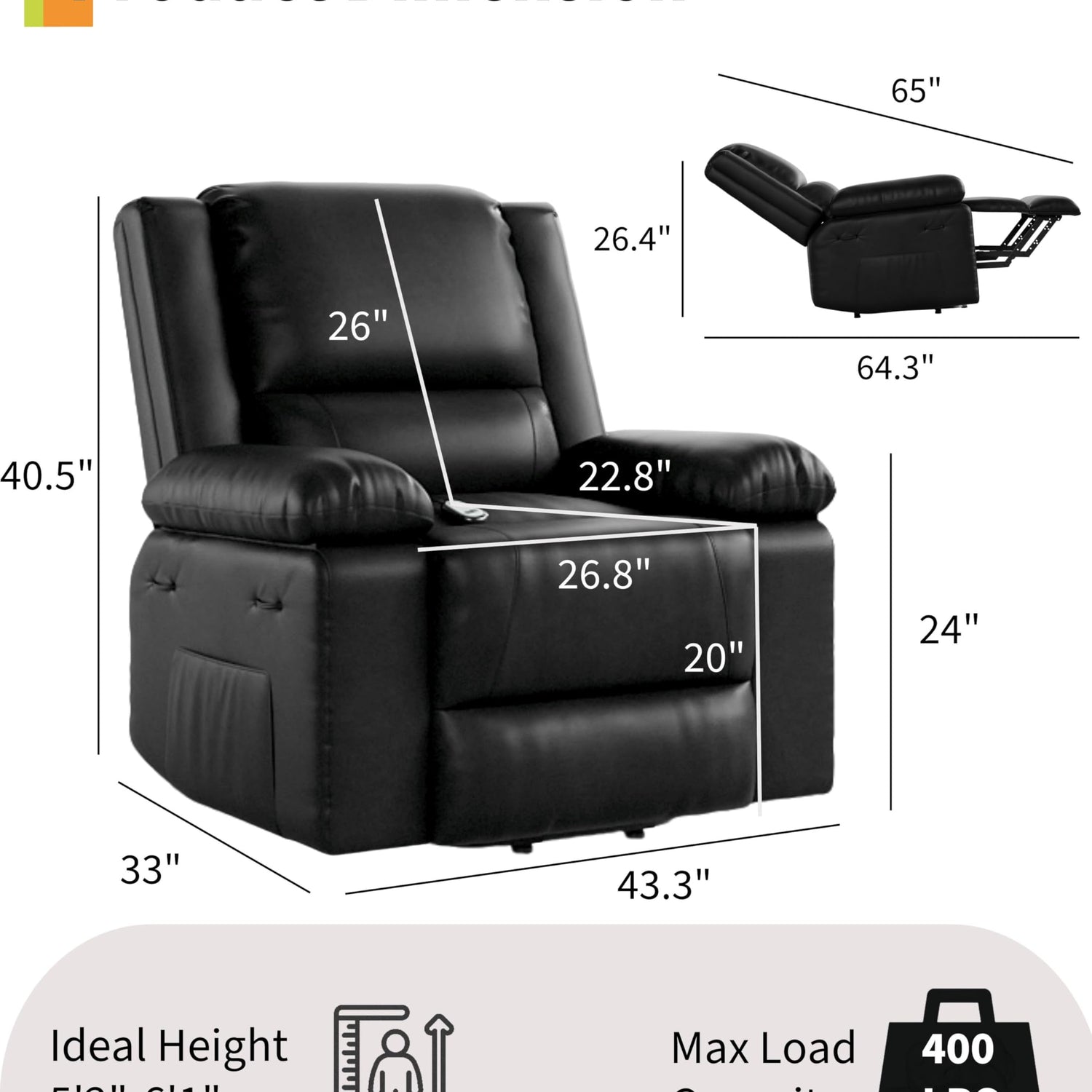 - 【Product Dimensions】The Power Lift Recliner Chair measures 43.3 x 37.4 x 40.6 in, seat width: 26.8 in, weight capacity:400 LBS, making it a sturdy and spacious choice for seniors and those with limited mobility