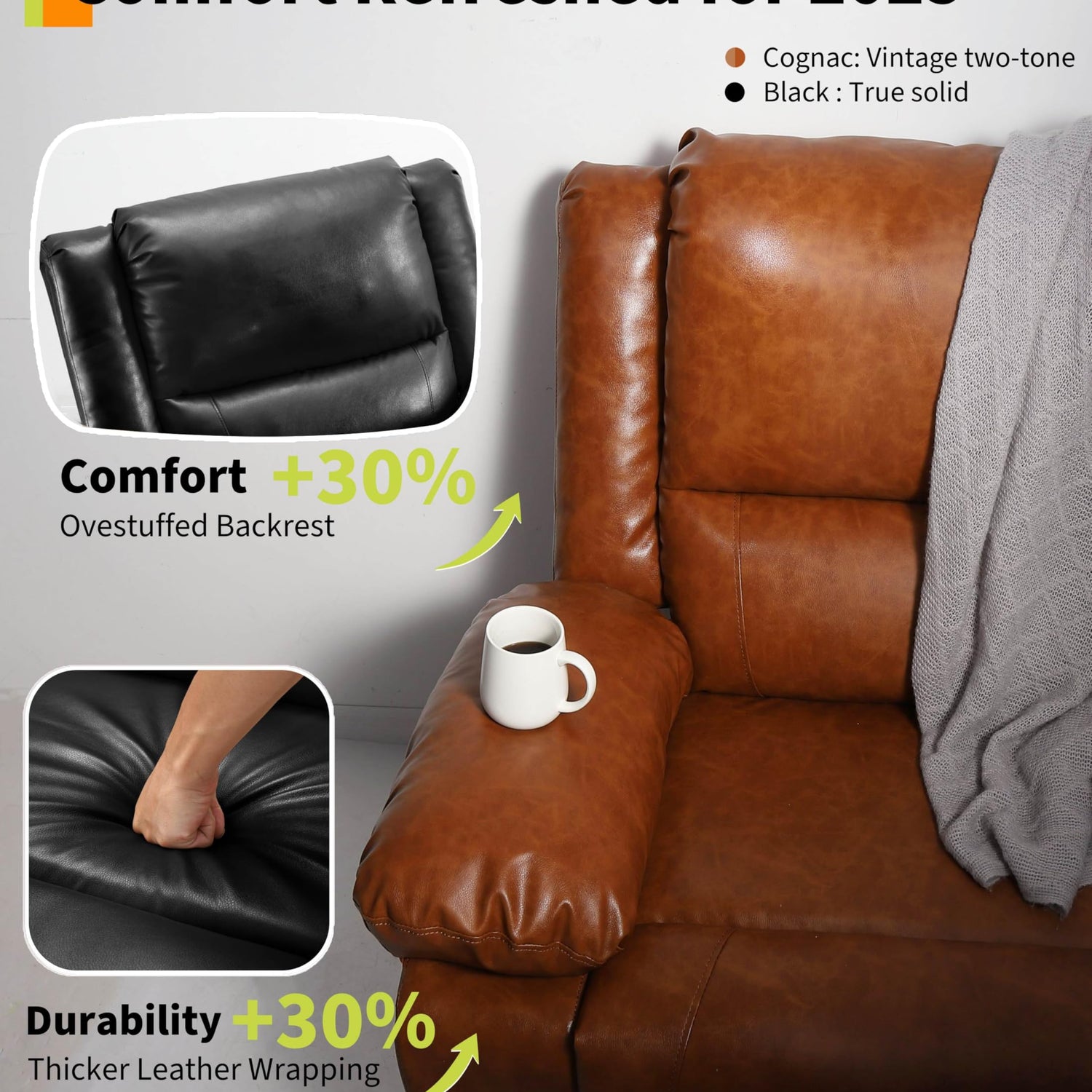 - 【Premium Quality Materials】Crafted from high-quality faux PU leather, this recliner is both wear-resistant and waterproof, ensuring long-lasting durability. The robust metal frame provides a sturdy foundation, guaranteeing safety and stability for daily use