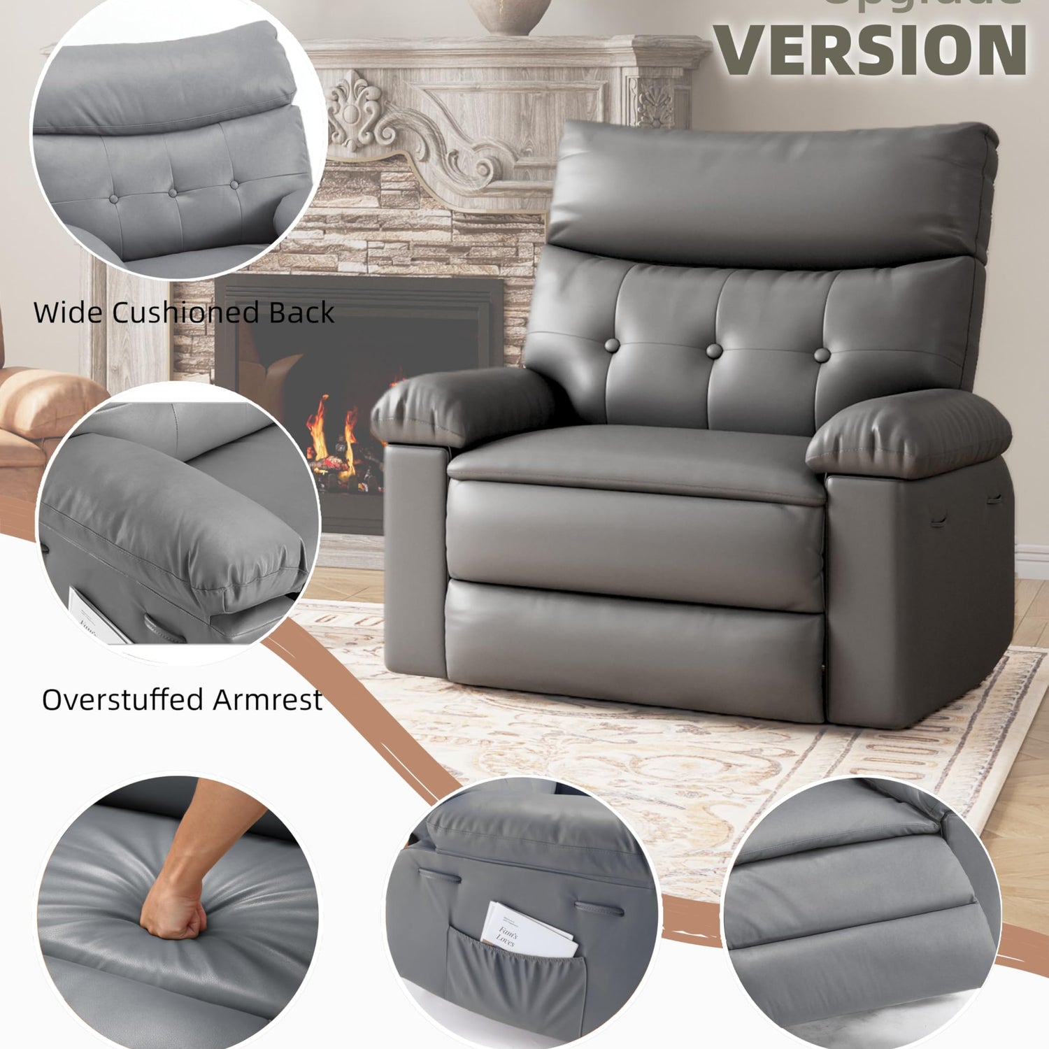 - 【Comfort Upgrade】Garvee recliner features high density thick sponge cushions with high resilience & breathability, ensuring lasting comfort even during extended use. Fully enhanced design with extra padding, taller backrest, and wider armrests deliver premium support for total relaxation