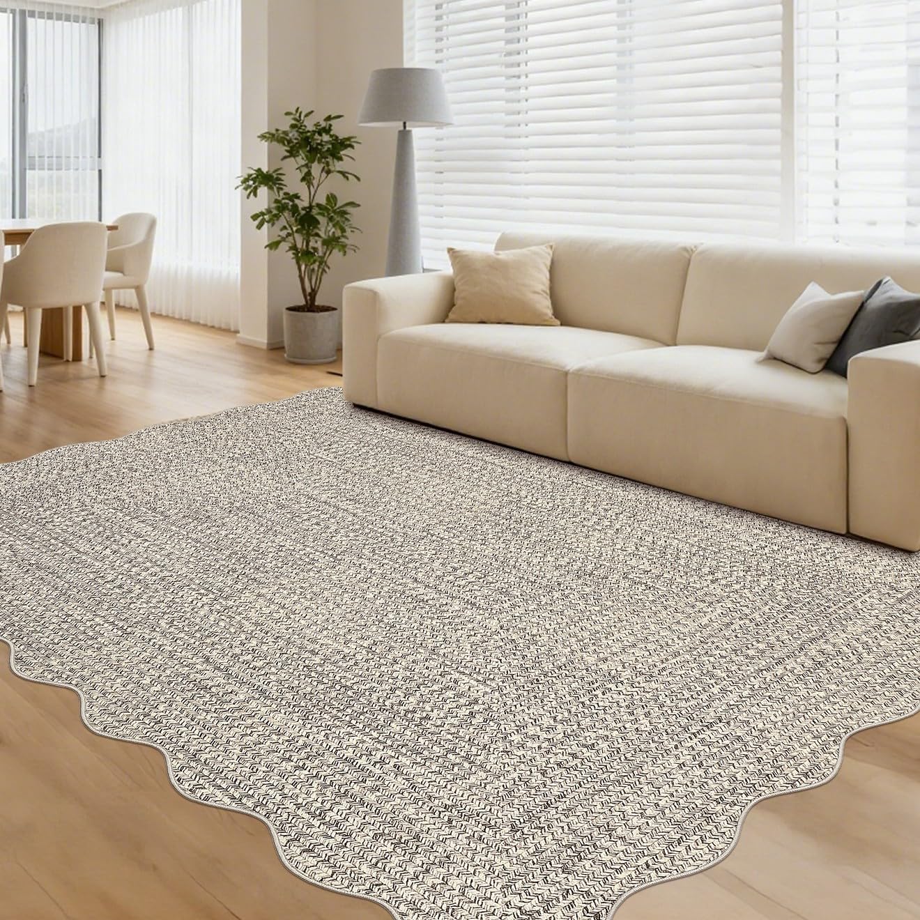 Garvee Printed Rug (Not Woven!) 8x10 Living Room Area Rug Non-Slip Washable Rugs, Farmhouse Scalloped Large Bedroom Rugs Stain Resistant Ultra-Thin Foldable Carpet for Nursery Dining Room