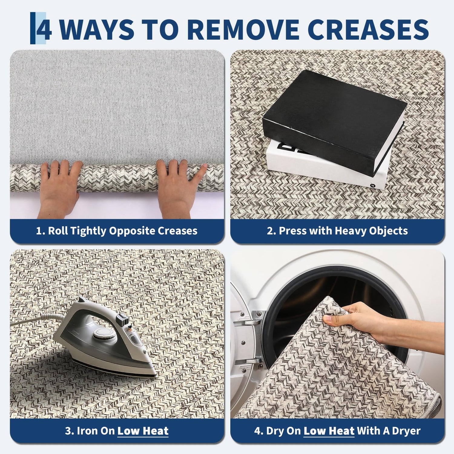 - 【Tips】Those creases when you first unroll? Totally normal. Just lay it flat in your high-traffic living room or kids’ play area, walk around, and poof—they’re gone in a few days.Due to the nature of printing, the rugs design may vary slightly from the product photos, making each scalloped rug unique.
