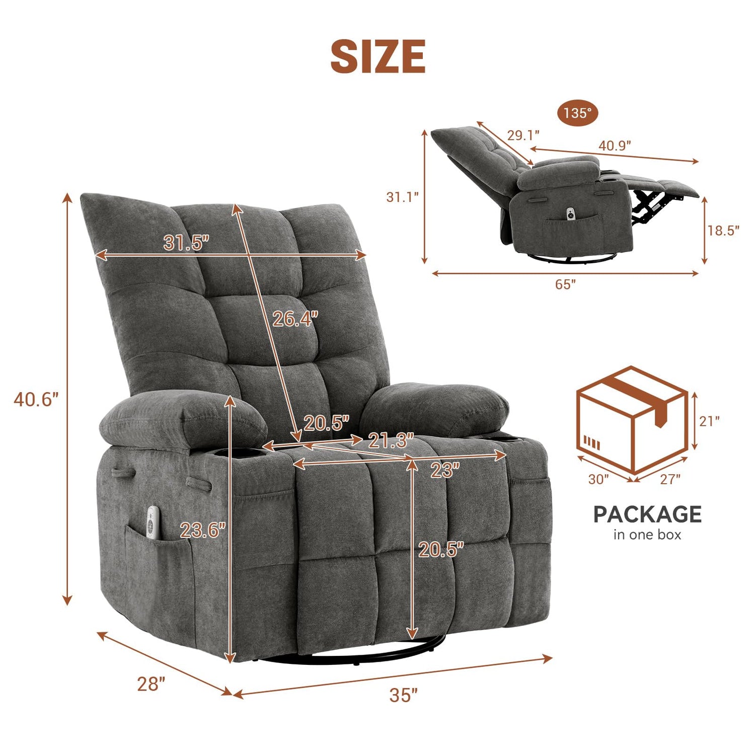 Garvee Swivel Rocker Recliner Chair with Heat and Massage, 360 Degree Swivel Rocking Single Sofa with Cup Holders, Oversized Single Sofa Seat, Lazy Boy Recliner Chairs for Living Room