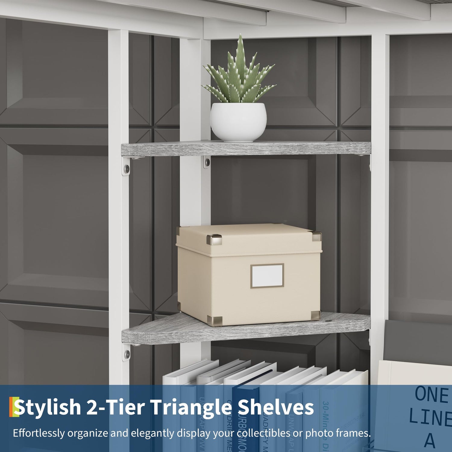 - 【Large Desk and Ample Storage Solutions】Work or study comfortably at the spacious 74.8"L x 17.7"W desk, which easily accommodates computers, books, and supplies. Two corner triangular storage shelves provide dedicated space for decor, photos, or essentials, adding personality and organization to your room. This loft bed with storage shelves ensures everything is within reach while maintaining a clutter-free environment.