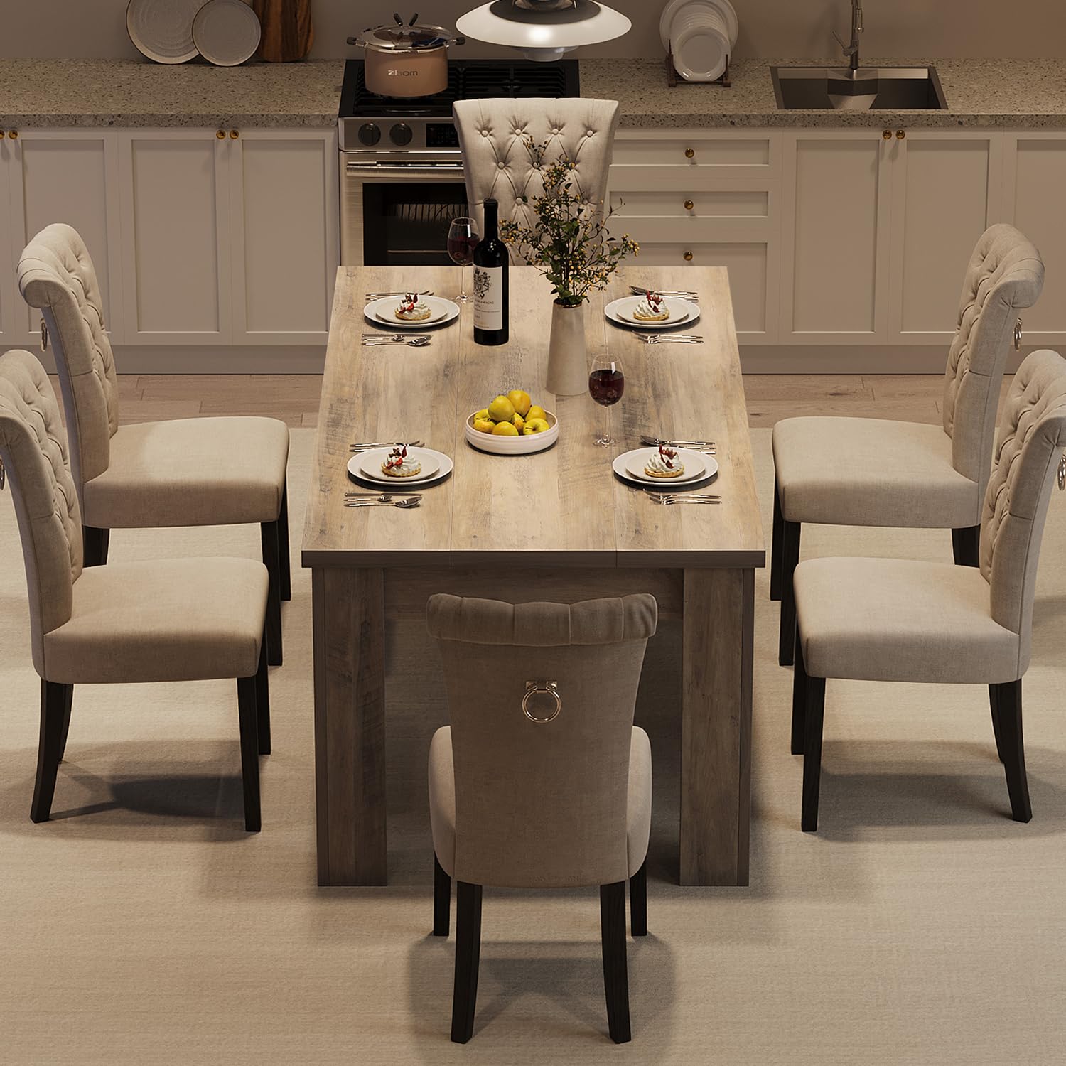 - ERGONOMICS DESIGN: Made of premium MDF board, which features a sturdy frame for a long lifespan. The large farmhouse dining table for 4 6 8 seats is padded with a thick MDF tabletop, keeping you comfortable all the time.