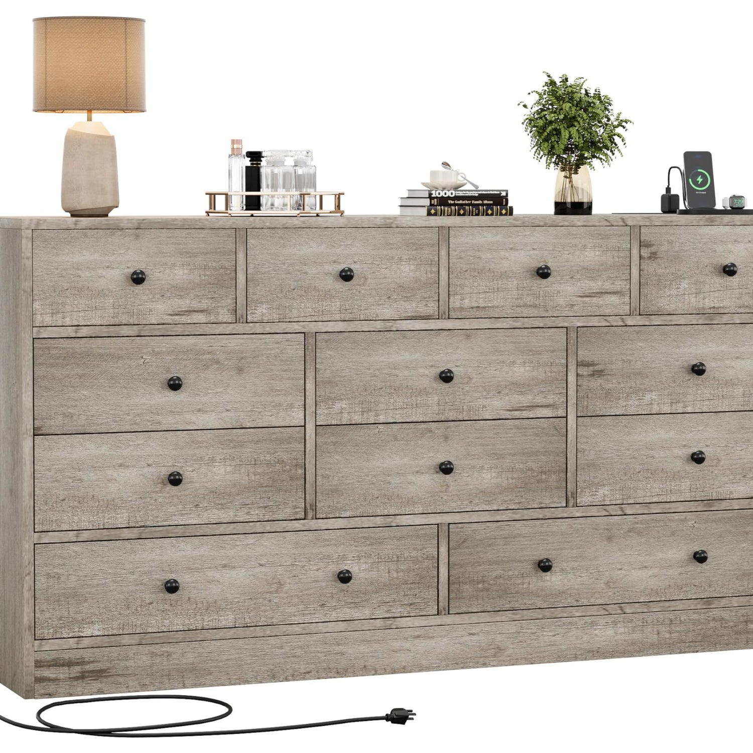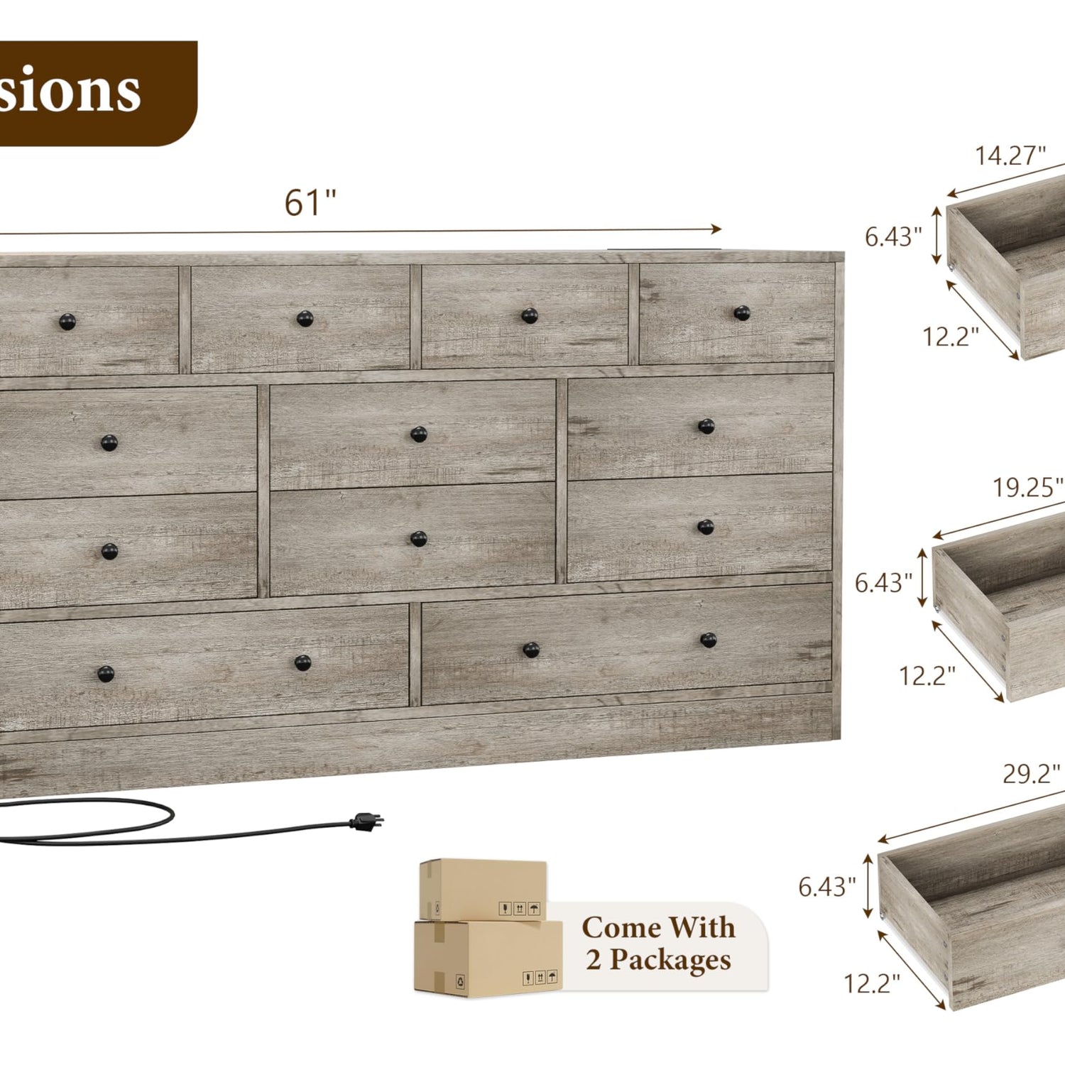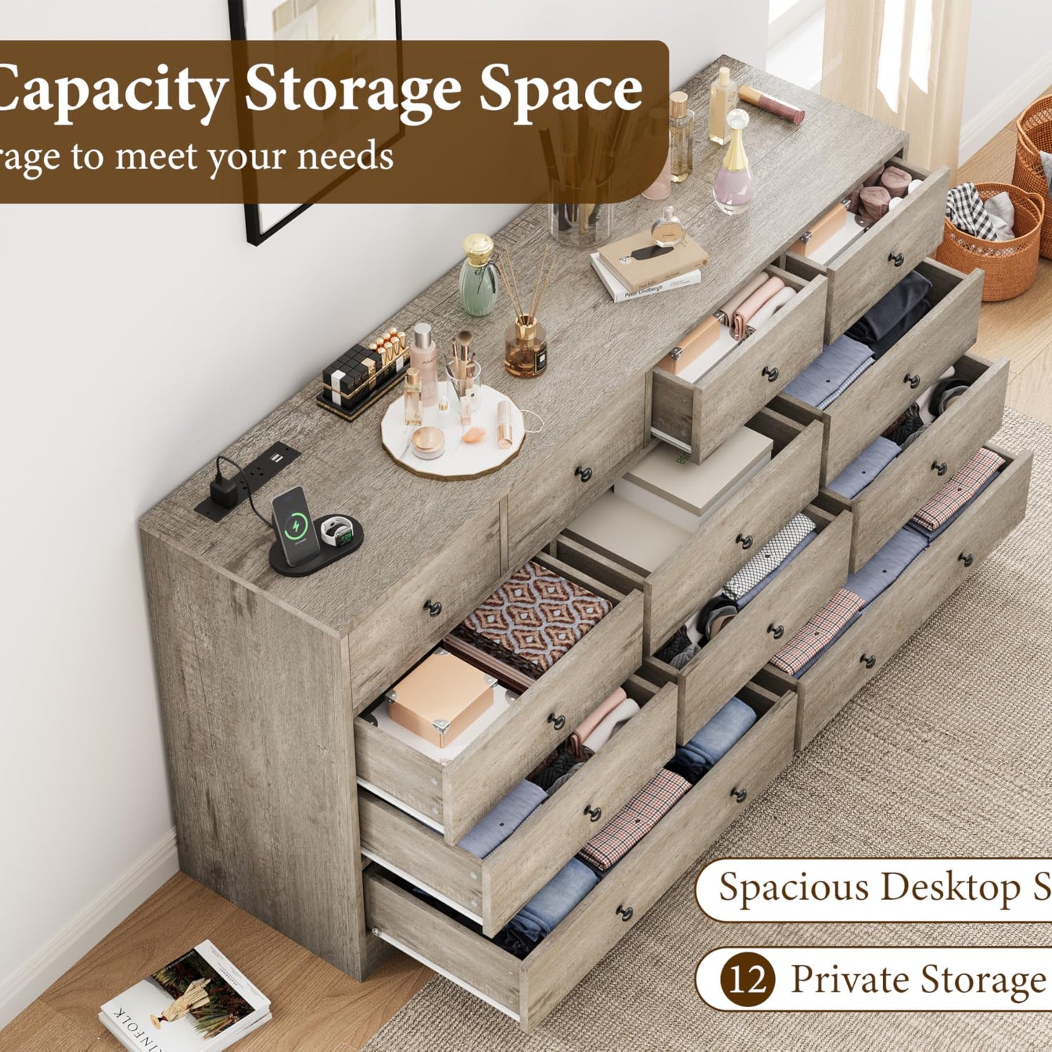 - 【Multi Interface Power Outlet】The 12 drawer dresser desktop has a built-in power outlet, providing 2 AC power outlets and 2 USB ports, which can power your lamp, cell phone, stereo, hair dryer, tablet pc, and other electronic devices, if you have limited outlets in your room, the modern dresser for bedroom provides a power port for very convenient use.