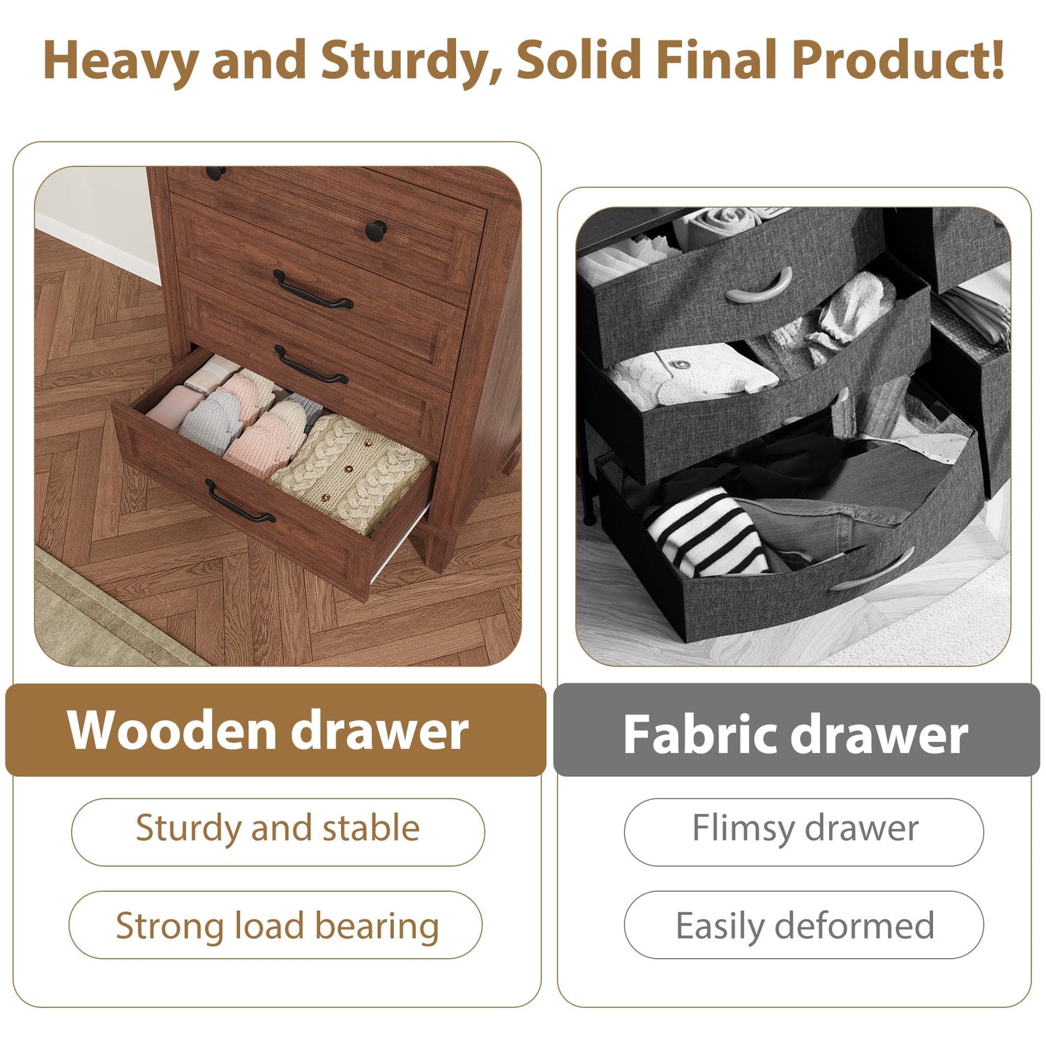 GarveeHome 4 Dresser for Bedroom, 34.8 in Tall Vertical Drawer Dresser with Large Storage, Freestanding Wooden Closet Chest for Bedroom, Living Room, Walunt