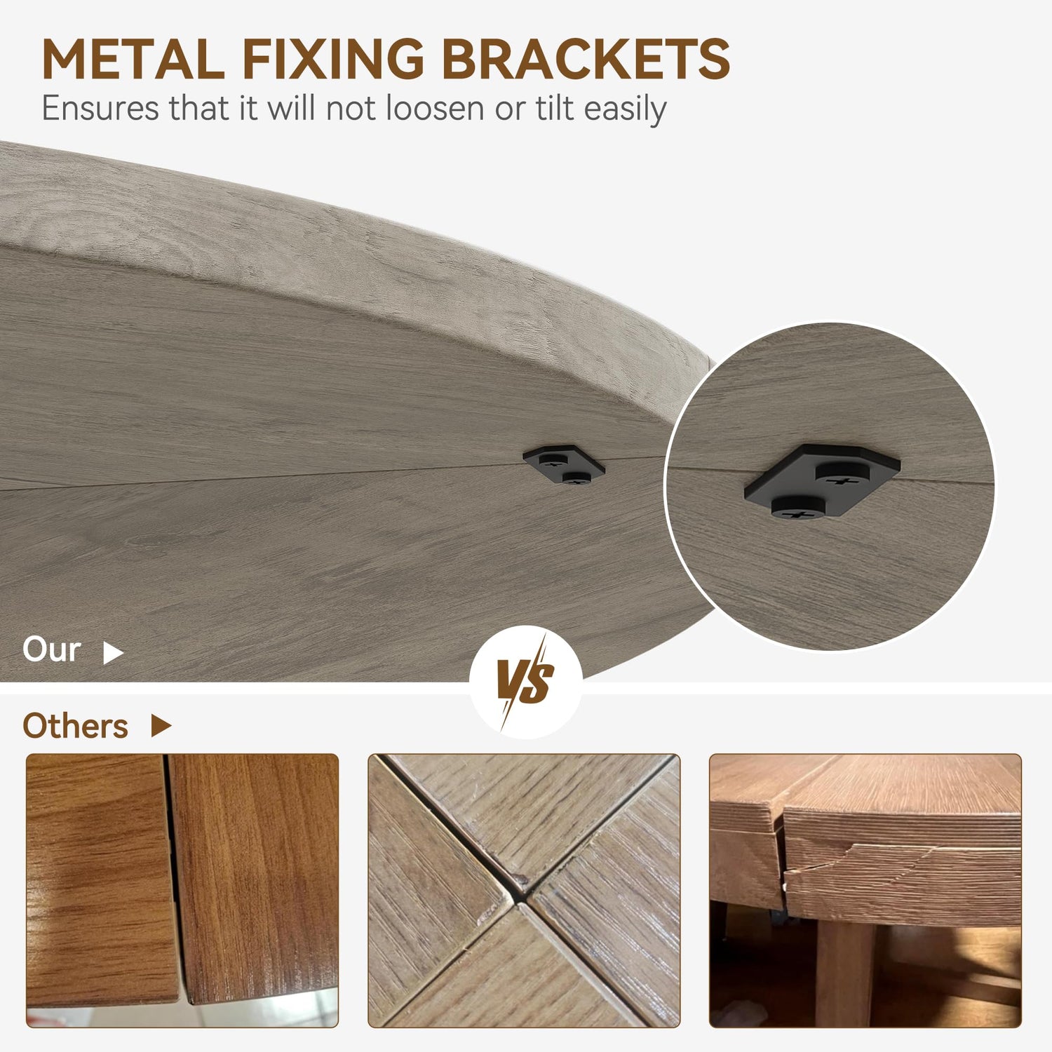 - Solid Structure: Unlike other products, we have effectively addressed common issues such as uneven, unstable tabletops and large gaps between wooden boards. Our four boards are securely joined using custom flat metal brackets, preventing the tabletop from loosening and allowing you to enjoy your meals in comfort.