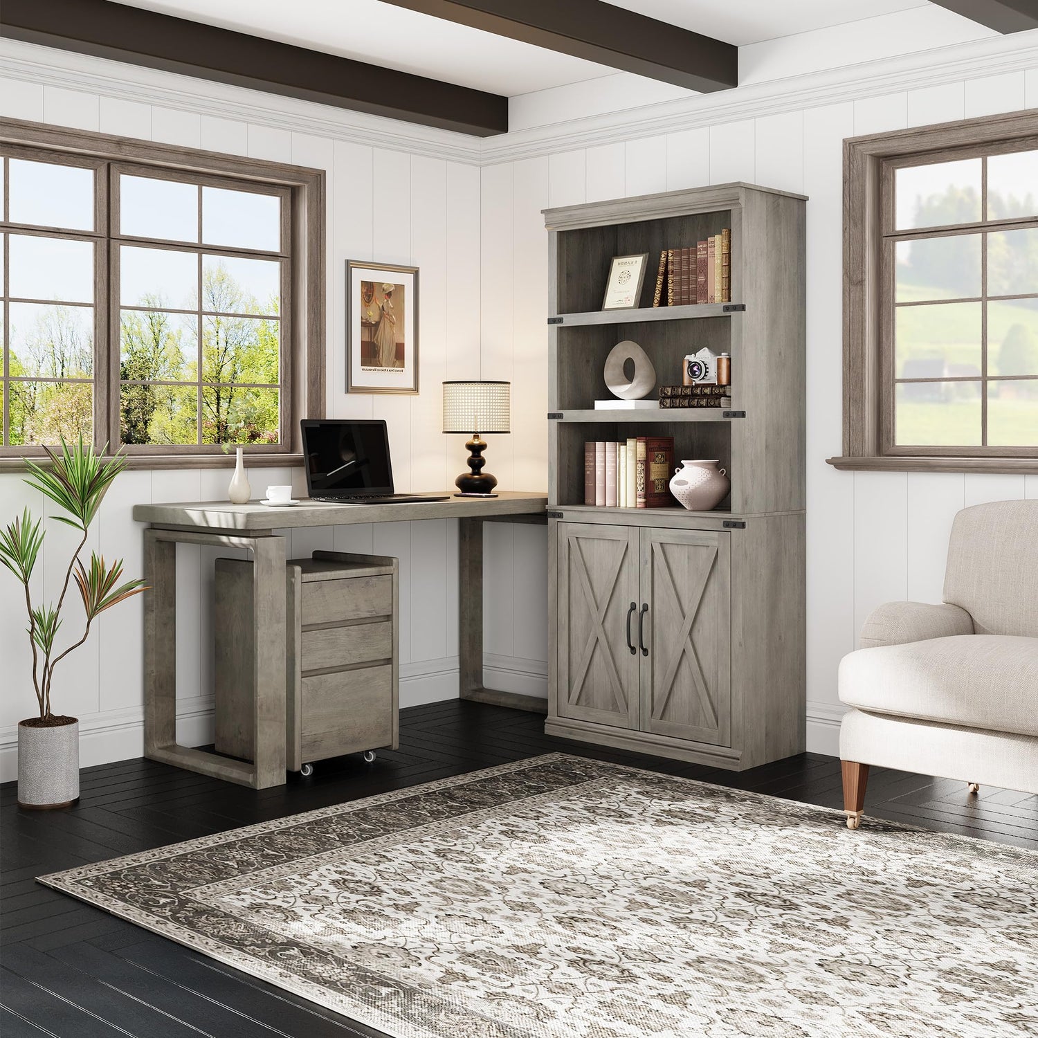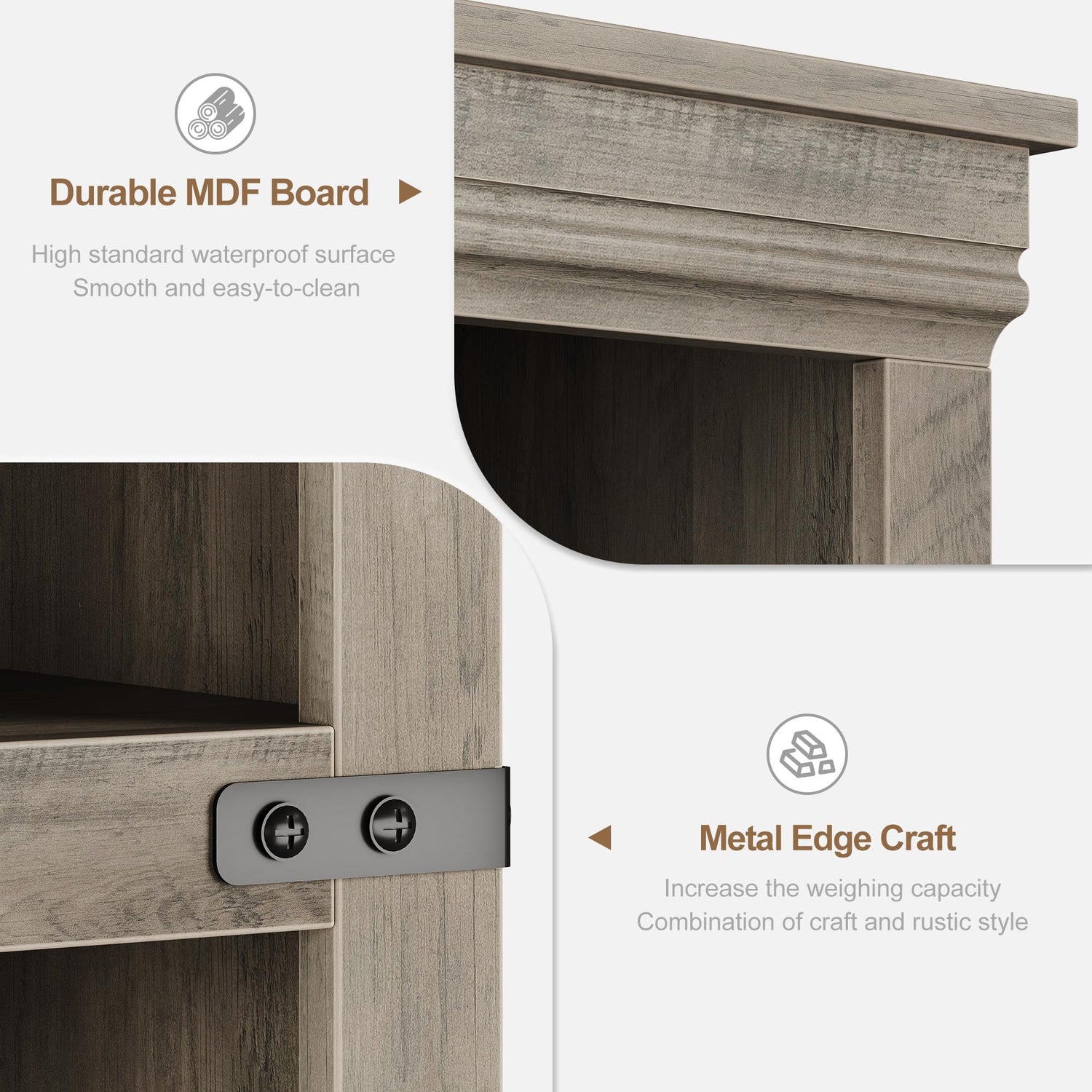 GarveeHome 5 Tier Book case with Cabinet, Farmhouse Book Shelf with Storage Doors, 68.7 in Tall Wooden 5 Shelf Case for Home Office, Living Room, Bed Room-(Grey, 68.7 in H x 31.5 in W x 12.9 in D)