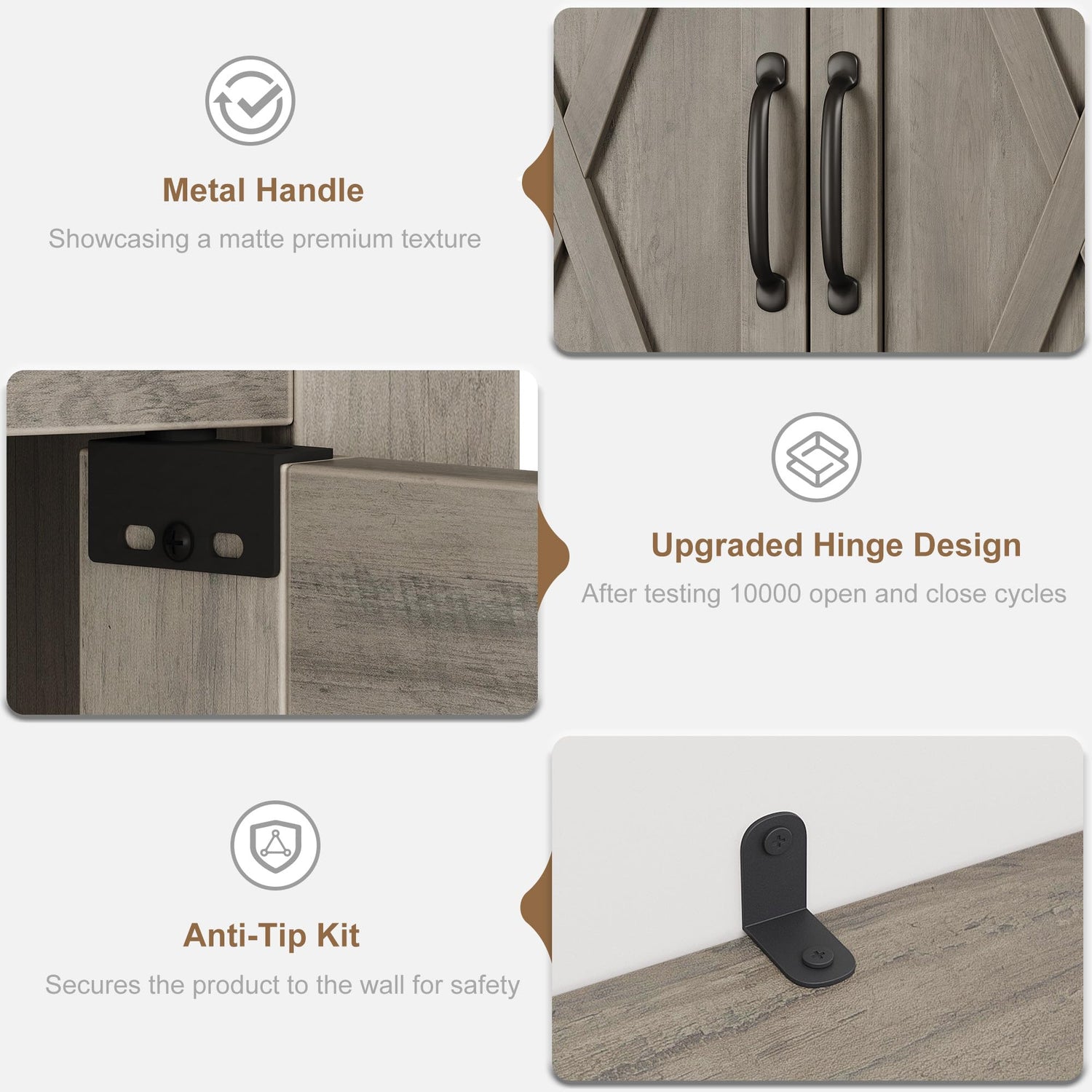 - User-Friendly Design: The bookshelf has been thoughtfully designed to meet consumer needs: an anti-tip device ensures that all family members can safely use the tall bookshelf; magnetic cabinet doors and hinges allow for smooth opening and closing, with a tested lifespan of over 10,000 uses; adjustable feet help maintain stability on uneven floors while preventing scratches on the ground.