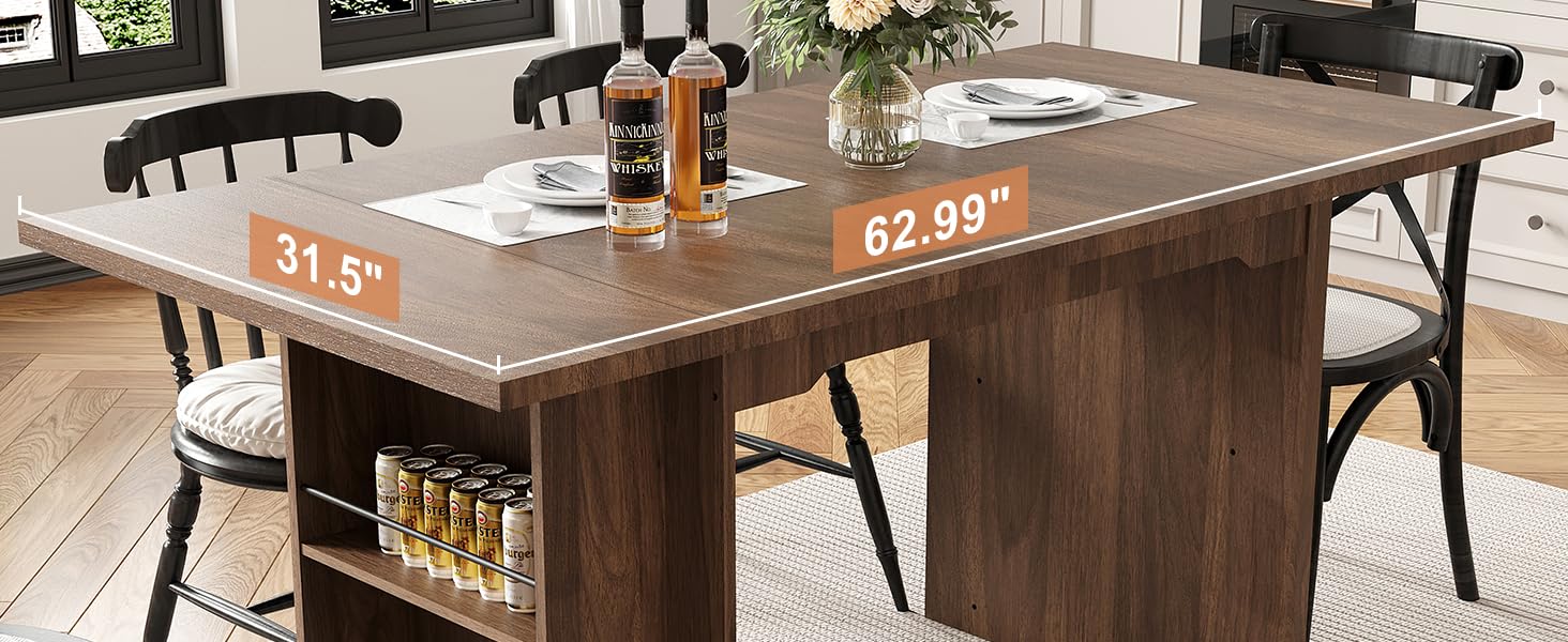 - --Functional Storage: This rustic wooden dining table features four under-desk storage shelves, ideal for stowing away beverages, wine, tissues, or decorative items. Keep your dining space organized while adding a stylish touch to your decor