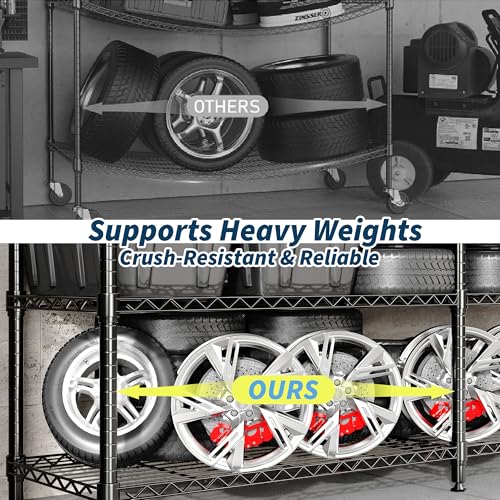 - 1060LBS Heavy Duty Shelving: Constructed with 19.1 mm diameter thickened metal poles and reinforced V-shaped wire shelves for extra strength, this heavy duty metal shelf can effortlessly hold up to 265 lbs per shelf, total 1060 LBS, providing reliable strong shelving for garage storage racks, pantry shelves, and tool organization.