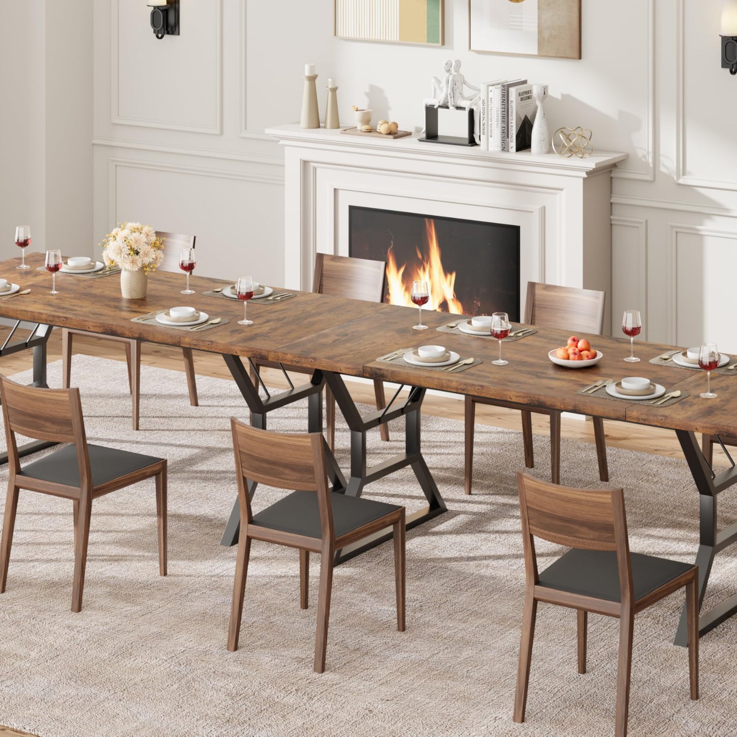 GarveeHome 70.9 in Large Dining Room Table for 6, Rectangular Kitchen Table with Heavy Duty Metal Legs, Farmhouse Wooden Dining Table for Big Family (Brown)
