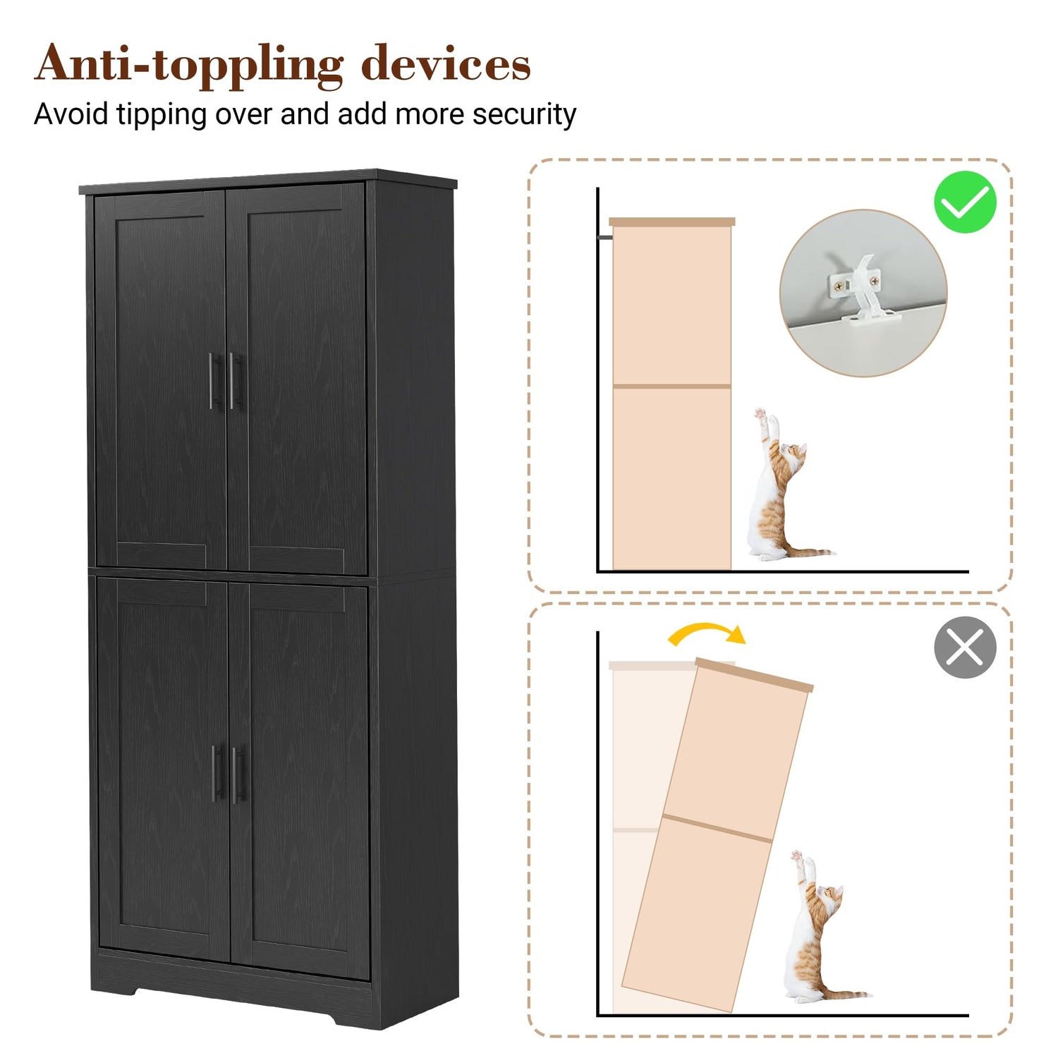 GarveeHome 70 in Tall Kitchen Pantry Cabinet, Freestanding Storage Cabinet with 4 Doors and Adjustable Shelves, Large Utility Hutch Cupboard for Dining Room, Bathroom, Living Room (Black)