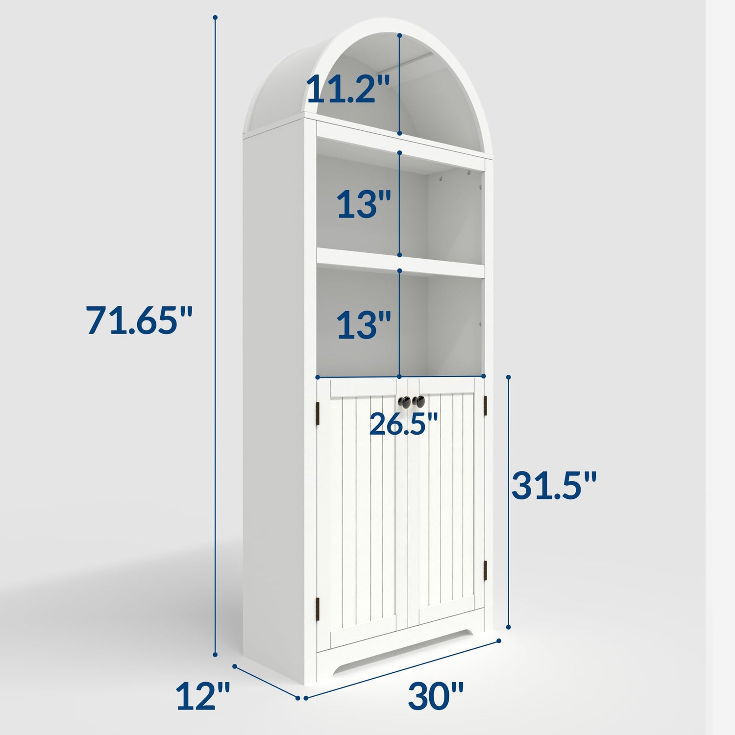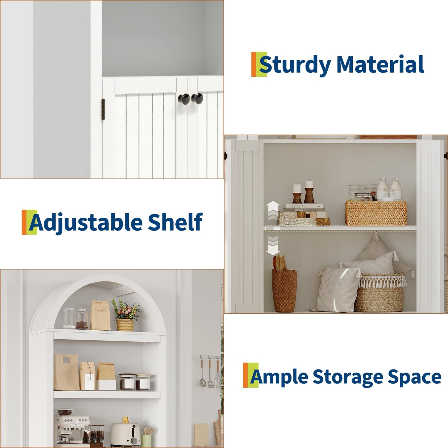 GarveeHome 72" Tall Arched Pantry Cabinet with Doors, 5-Tier Kitchen Pantry Cabinet with Adjustable Shelf & Black Handles, Wood Storage Cabinet for Dining Room, Kitchen, Living Room, White