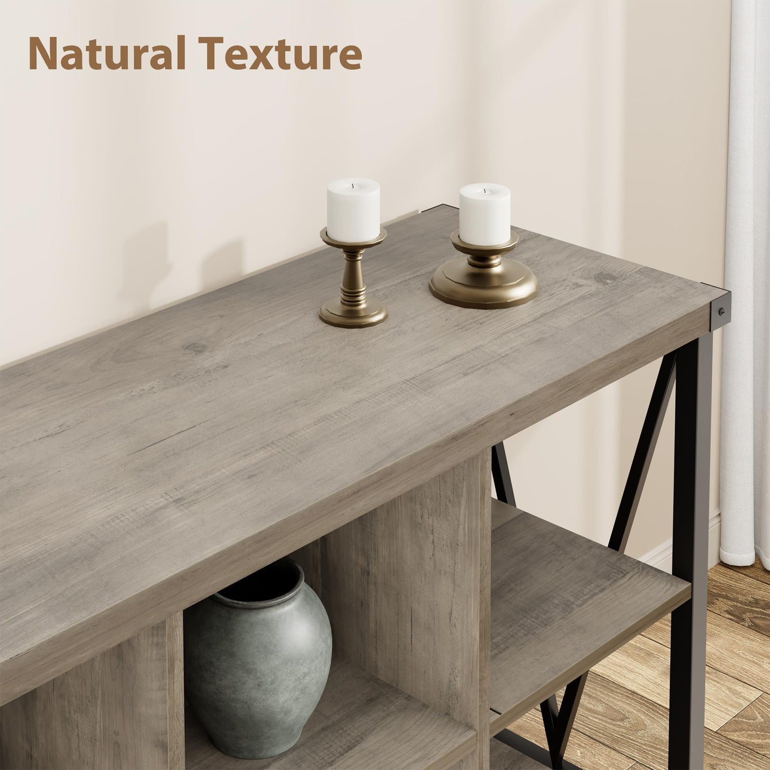 GarveeHome 8 Cube Storage Organizer Bookshelf, Farmhouse Horizontal Bookcase, 62 Inch Wood Storage Bookcase for Entryway, Long Low Bookshelves for Living Room (Grey, 8 Cube Metal)