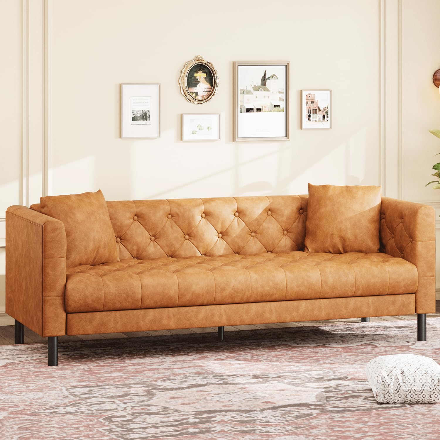 - Exquisite Luxury Design:Elevate your space with this 81 in leather couch, featuring a sophisticated button-tufted design for timeless elegance. Meticulously sewn buttons enhance both visual appeal and plush comfort, making it a stunning centerpiece for your living room or office.