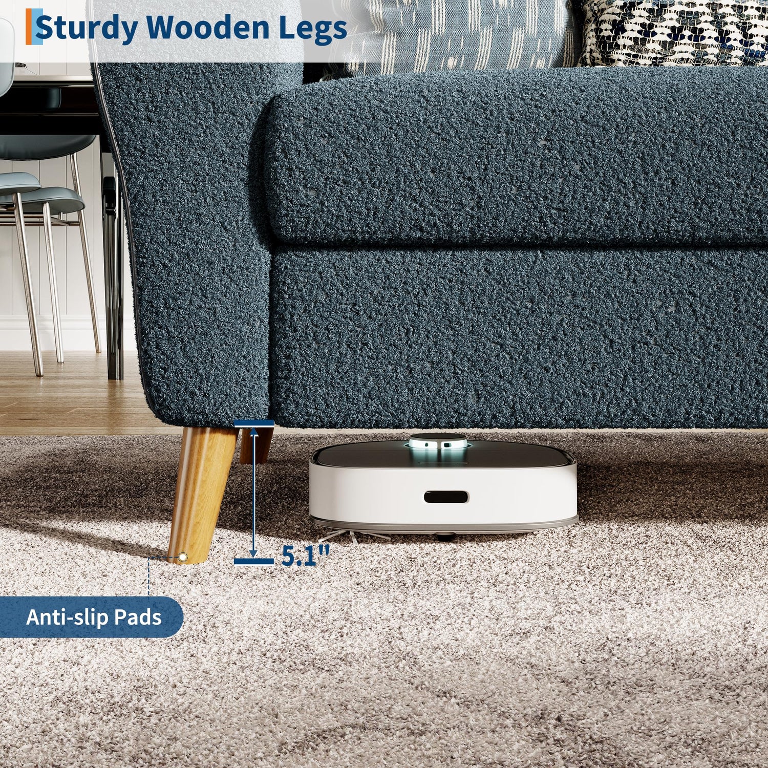 Keeping your sofa looking fresh is simple. The boucle fabric is easy to maintain with regular vacuuming and spot cleaning using a damp cloth and mild soap. Avoid harsh chemicals to preserve the fabric's texture and color. The wooden legs can be wiped clean with a dry or slightly damp cloth to maintain their natural finish.