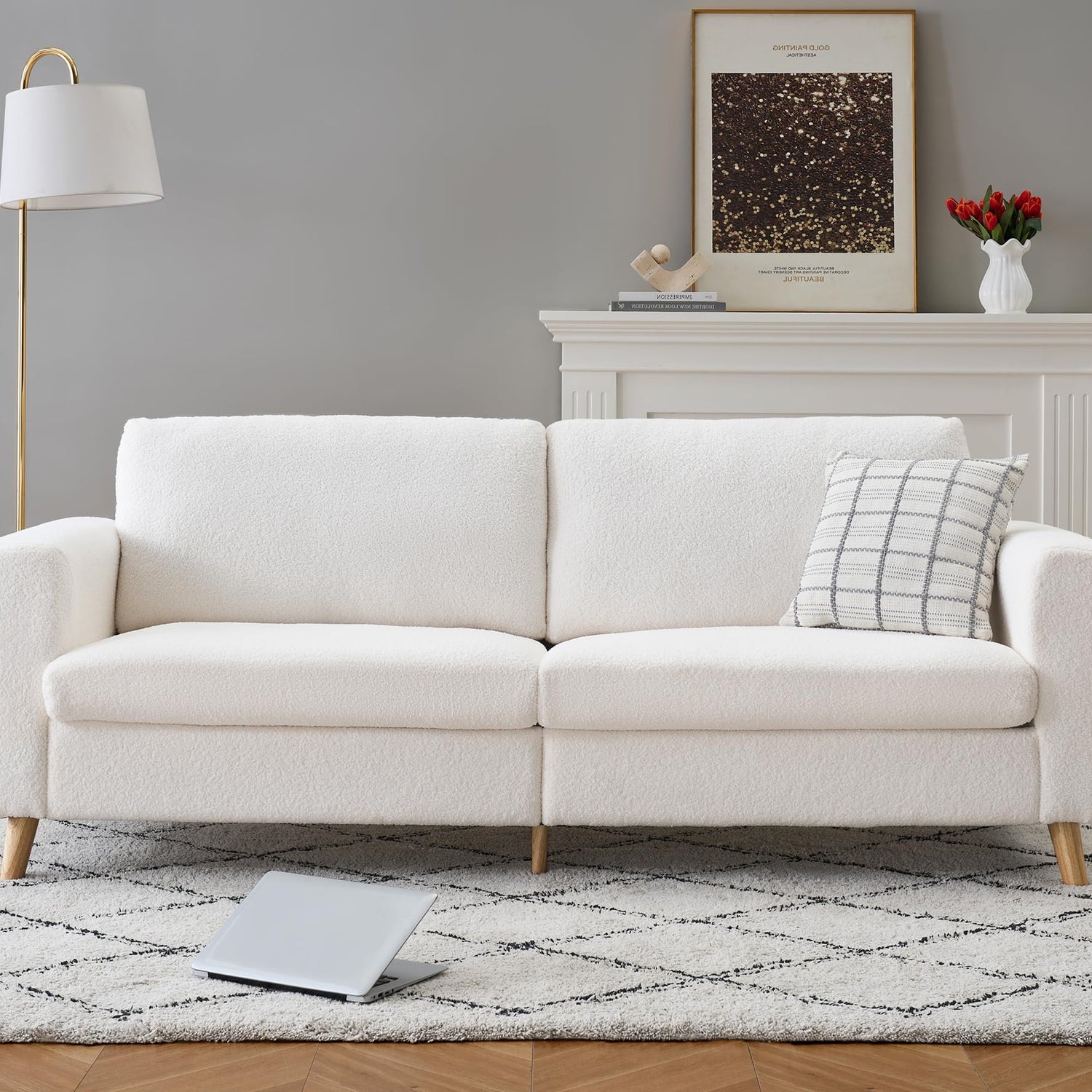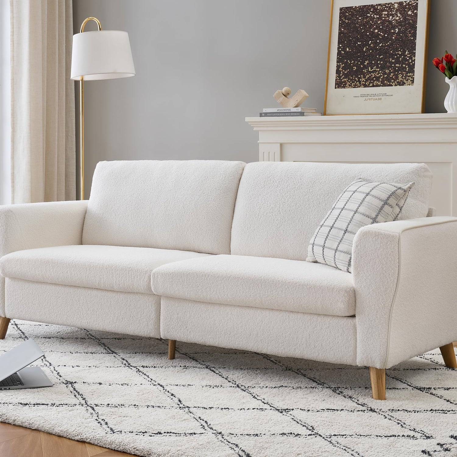 GarveeHome 84" Sofa Couch, Large Loveseat Sofa with Streamlined Armrests & Wood Feet, Modern Boucle Sofa for Living Room, White