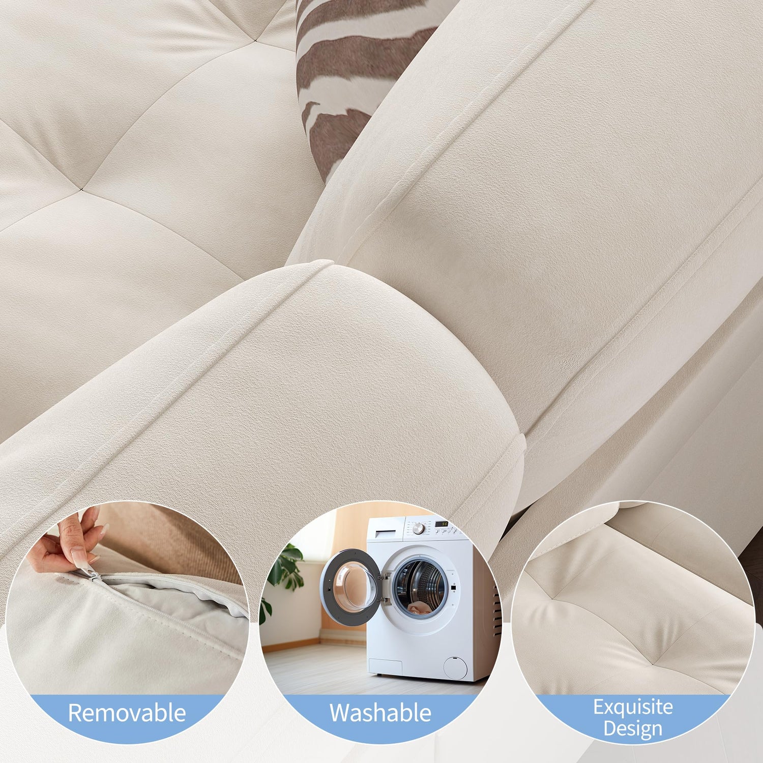 - Chic Comfort: Crafted from soft, skin-friendly velvet fabric, this beige sofa counch adds a touch of elegance to any room. The plush texture not only looks stunning but also feels amazing against your skin, creating a cozy atmosphere for lounging.