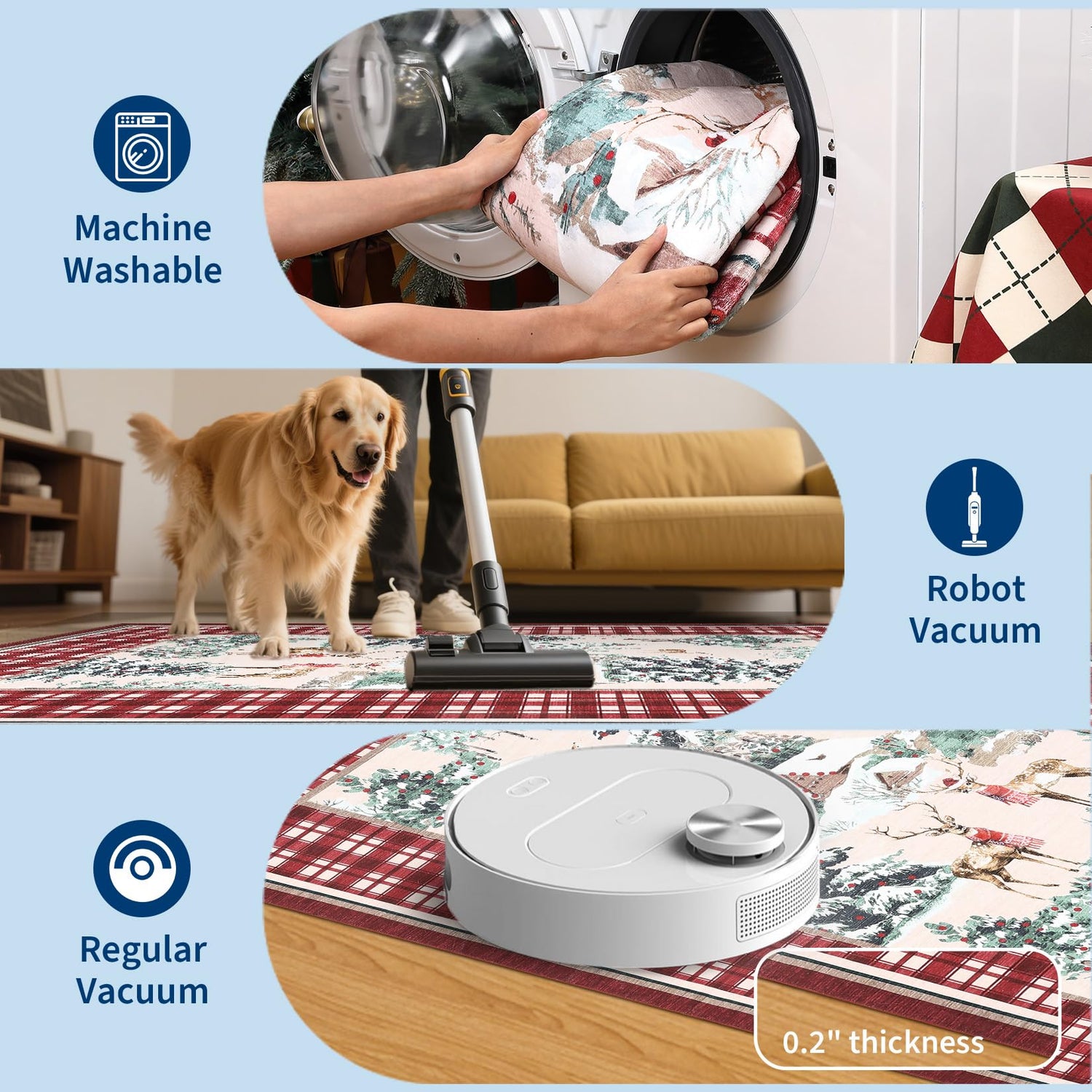 - The Ultimate Thoughtful Christmas Gift: Surprise your loved ones with the perfect holiday gift! This beautiful Christmas Tree and Deer plaid rug is an ideal housewarming, birthday, or Christmas present for anyone who loves to decorate their home for a magical, storybook-inspired holiday season.