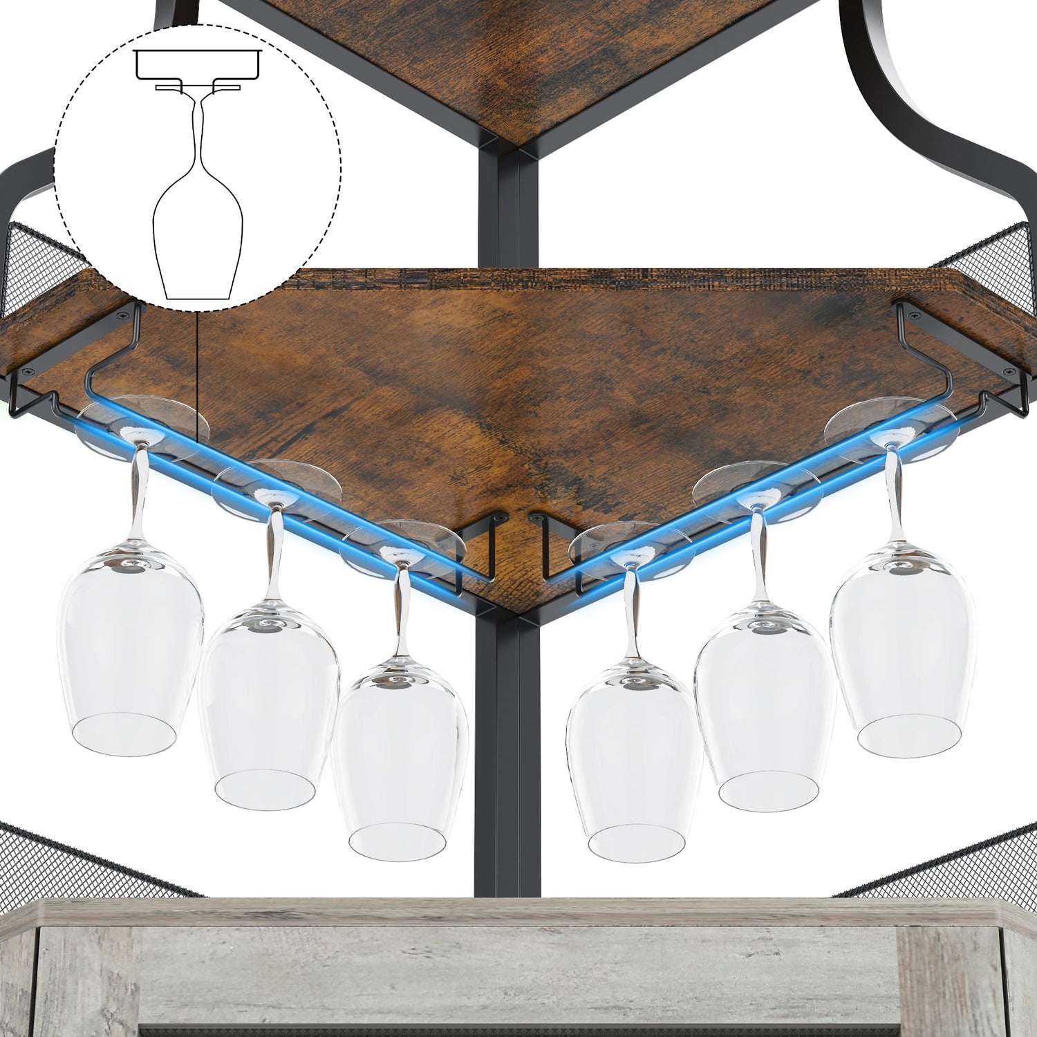 - Corner Wine Cabinet with LED Lights: Elevate your home ambiance with our corner wine cabinet featuring RGB LED lights that offer 7 main colors, multiple flashing modes, and brightness adjustments. Convenient remote control allows you to effortlessly create the perfect atmosphere for entertaining guests or a cozy night in