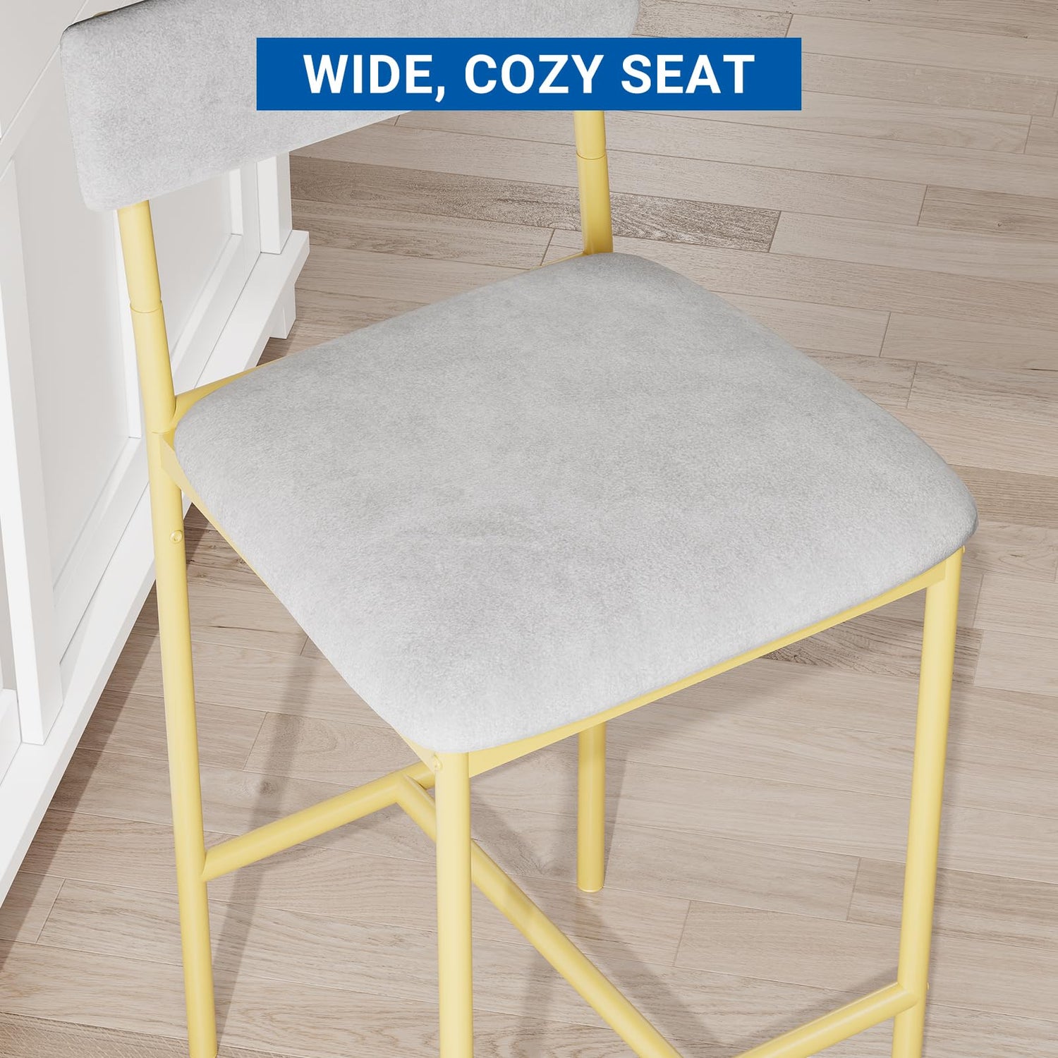 GarveeHome Dining Table Set for 2, Counter Height Kitchen Table with 2 Upholstered Bar Stools, Dining Table and Chairs Set with Storage Shelves, for Small Space, Apartment, Gold-Gray-White